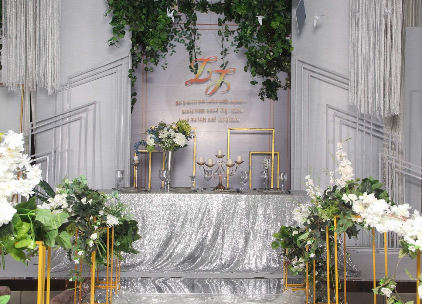 SquarePie Sequin Tablecloth 60 x 102 Inch Silver Bling Sparkly Table Cloth for Wedding Party