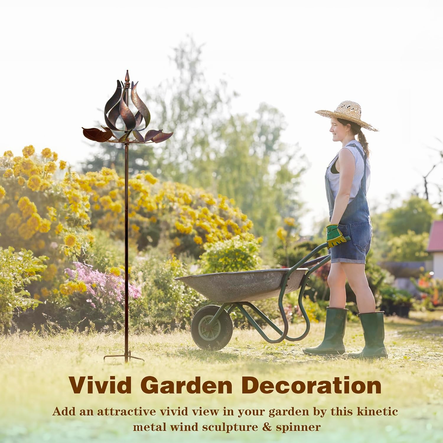Wind Spinners Outdoor - Large Tulip Metal Bronze Color Wind Sculptures & Spinner, Kinetic Gift Ideal Windmill Decor for Garden and Yard (75 inch Height)