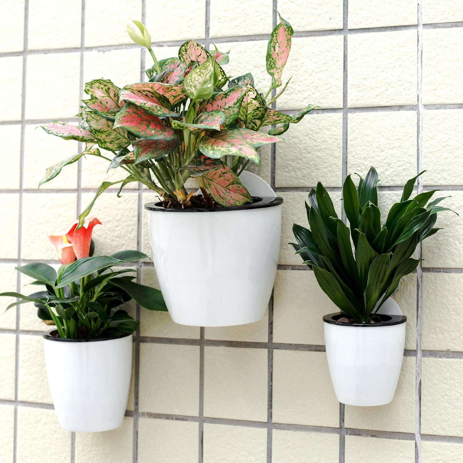 • Self-watering Wall Planter: Hanging planter pots designed with double-layer to allow excess water to store in bottom of this self-watering planter and provide to your plants as needed: automatically suck the water and nutrients up from the bottom of the outer cup via cotton rope wick to ensure plants take enough water they need for days, and you don't have to water them frequently. This clever hanging flower pots may help you care your plants when you go outside a couple days or on business.