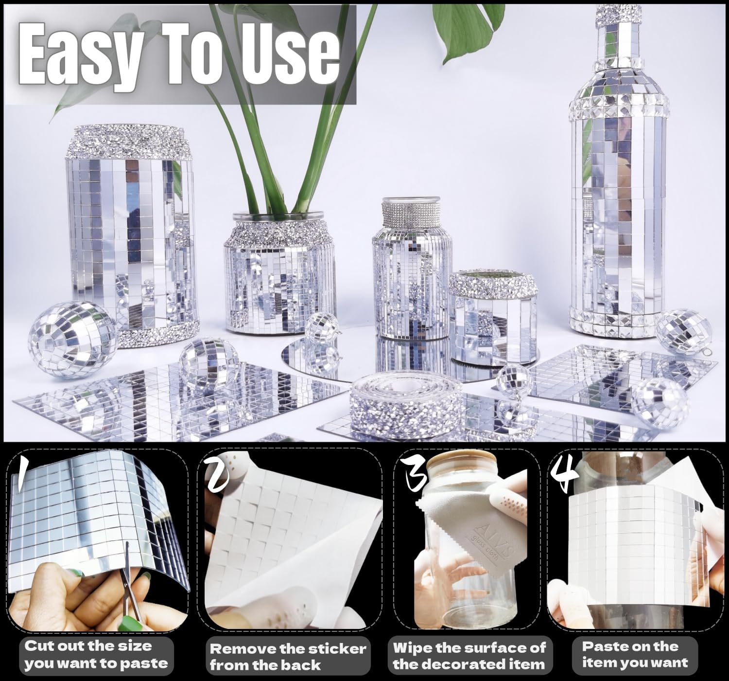 • Ideal for craft project: you can use the stickers to make mirror ball, cards and scrapbooks; the mirror mosaic reflects silver light, which is beautiful and attractive that makes your craft works unique and eye-catching
