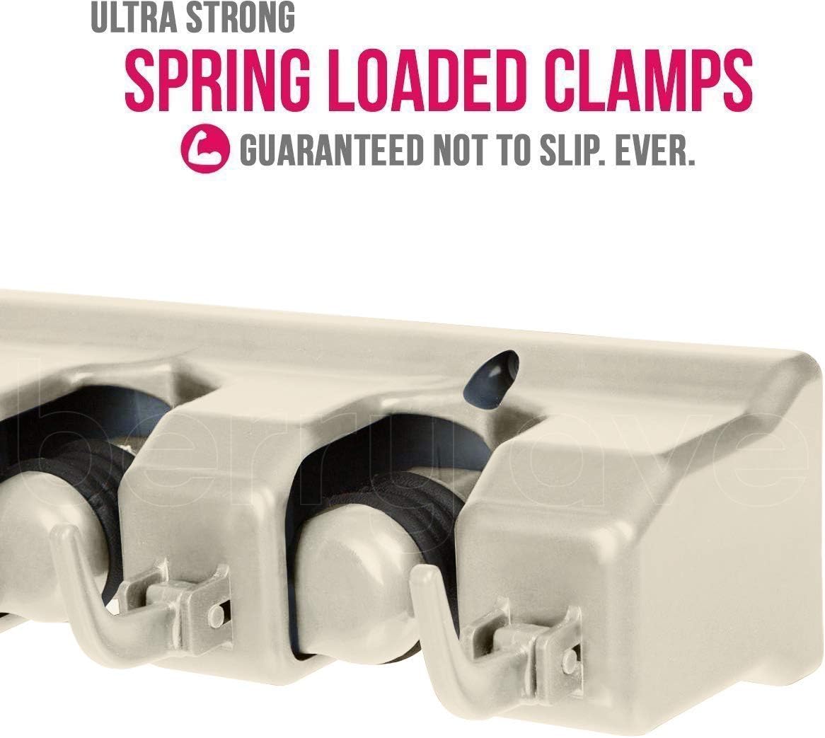 • NO SLIDE, NO MESS – Each commercial grade broom hanger has a 35 pound holding capacity. Thanks to the spring loaded, double rubber gripped slots, the Berry Ave utility hooks can hold anything from wet mops and dirty rakes to baseball bats, without any annoying slipping.
