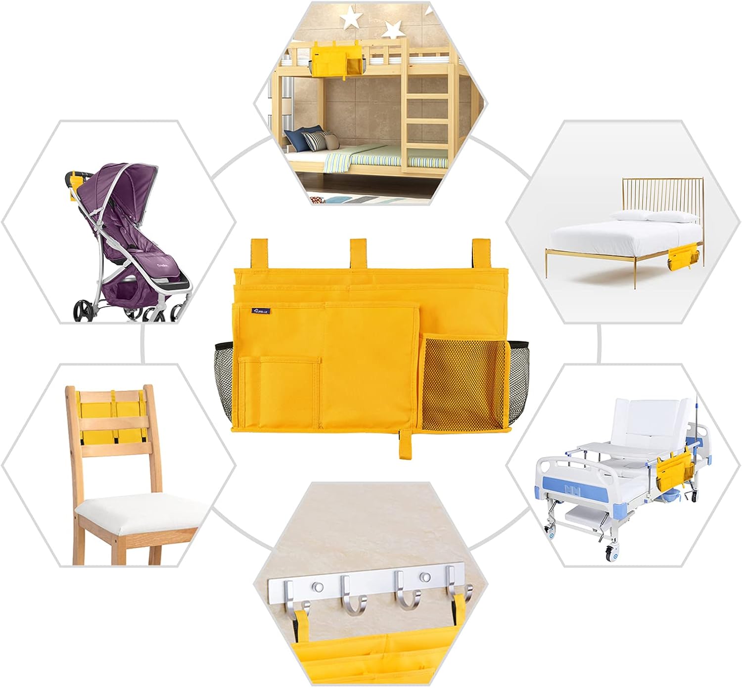 • Multi-Purpose: The bedside organizer is suitable for kid beds, top bunk beds, chair arms, and baby strollers, a good choice for RV, home, hospital, living room, or college dorm.