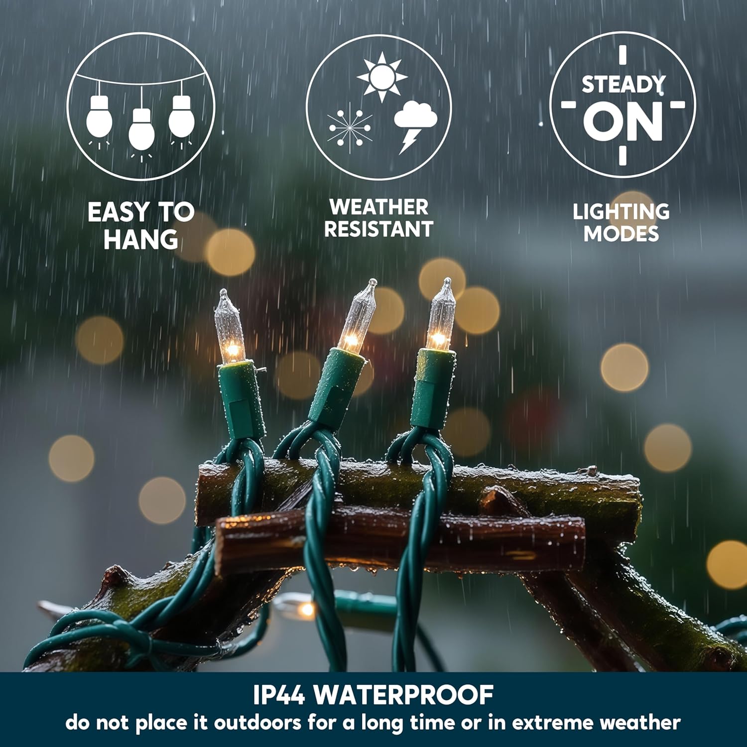 • UL588 CERTIFIED FOR INDOOR & OUTDOOR SAFETY - Ensure holiday peace of mind with our string lights, rigorously tested to meet US UL safety standards. The IP44 waterproof design and durable construction withstand rain and snow, making them perfect for Christmas tree decorations, garden, patio, and year-round use.