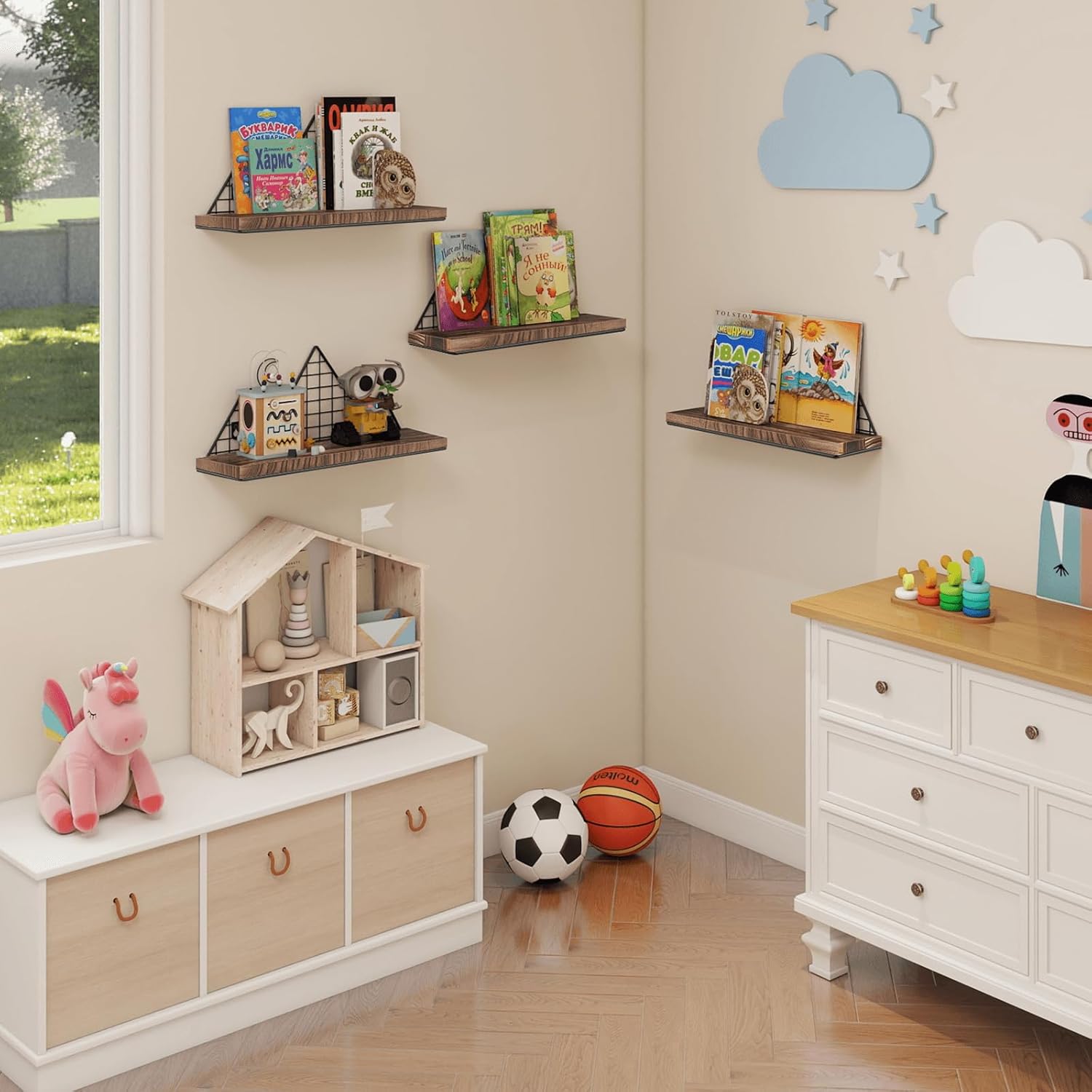 • STURDY AND EASY TO INSTALL: Fully assembled hanging shelves, sturdy design mounts securely and easily to the wall, use screws and anchors or traceless hangers; Each shelf supports up to 22 pounds