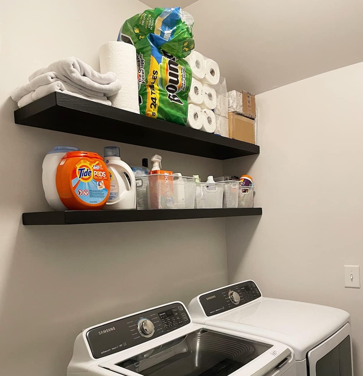 joelsantiques 72 Inch Wooden Floating Shelves for Wall - 72x12x2 in - Made of Natural Wood - Long Heavy Duty Wall Shelves for Bedroom - Perfect for Living Room, Kitchen - Black