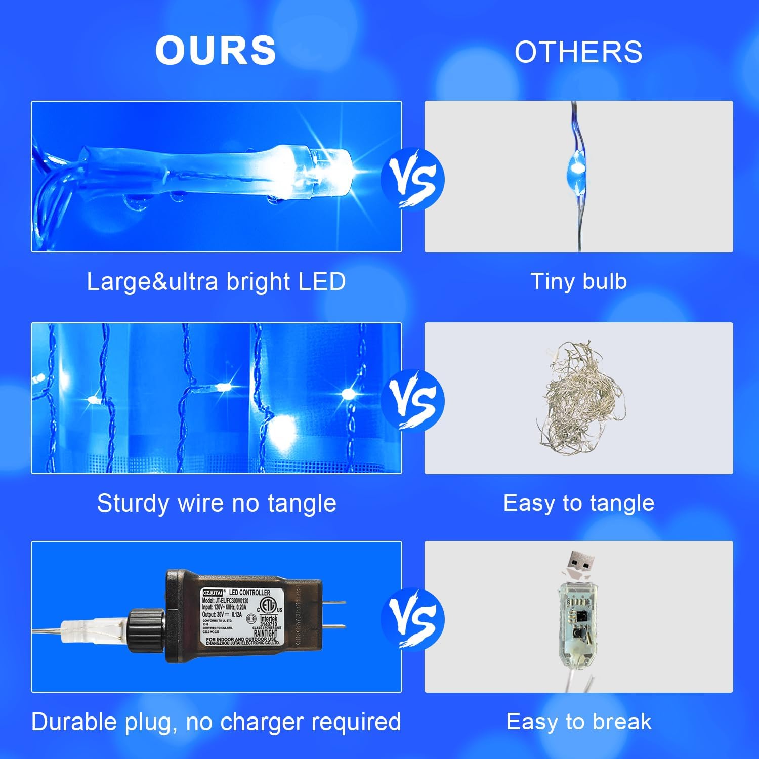 • Customer Team: If there are any problems with our indoor-outdoor blue Christmas curtain lights, please get in touch with us and we will return or refund you, your satisfaction is our unremitting pursuit