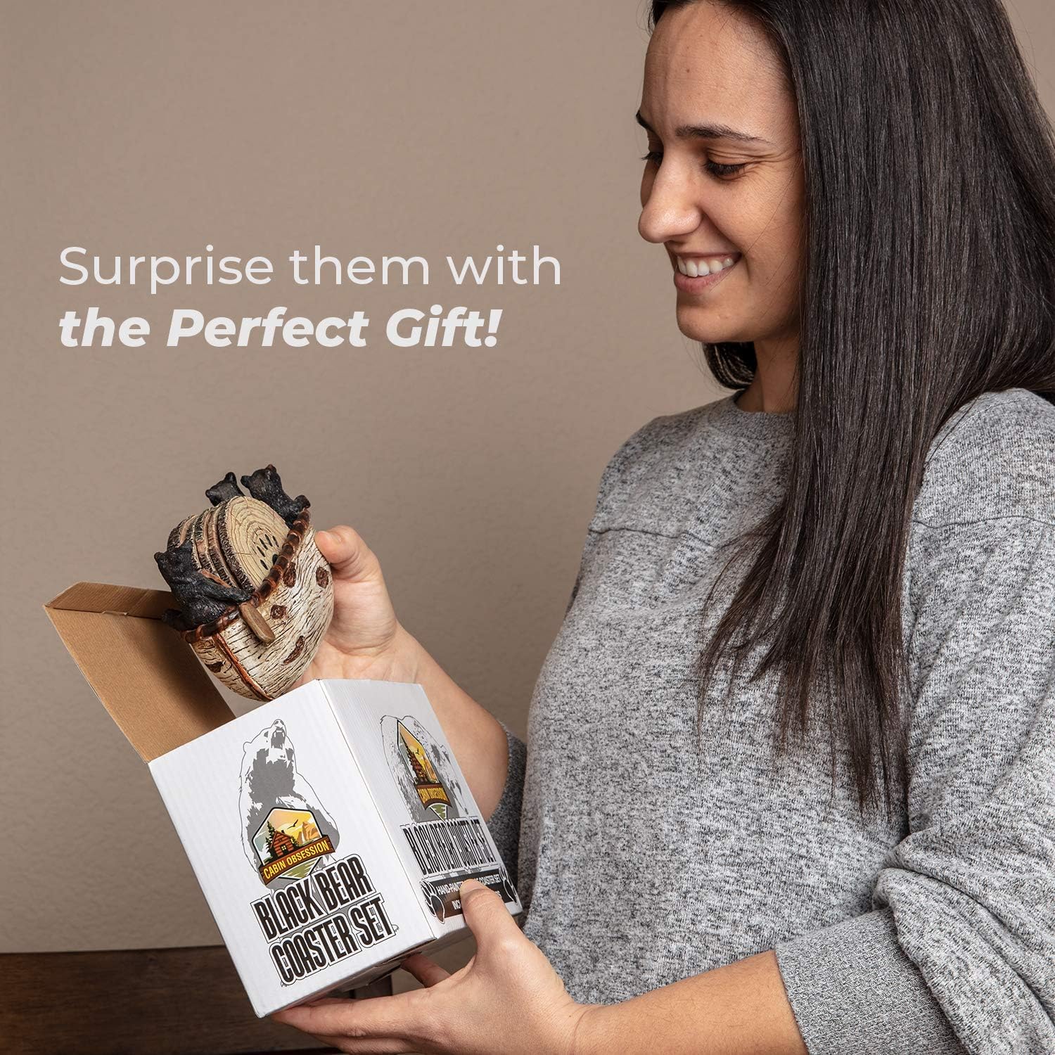 • 🐻 Makes the Perfect Gift – Our adorable bear coaster set makes the perfect housewarming gift for cabin decorations, rustic home decor, farmhouse decor, or simply as a unique coffee table feature for a man cave. Not to mention, the adorable canoeing bear characters make a great conversation piece!