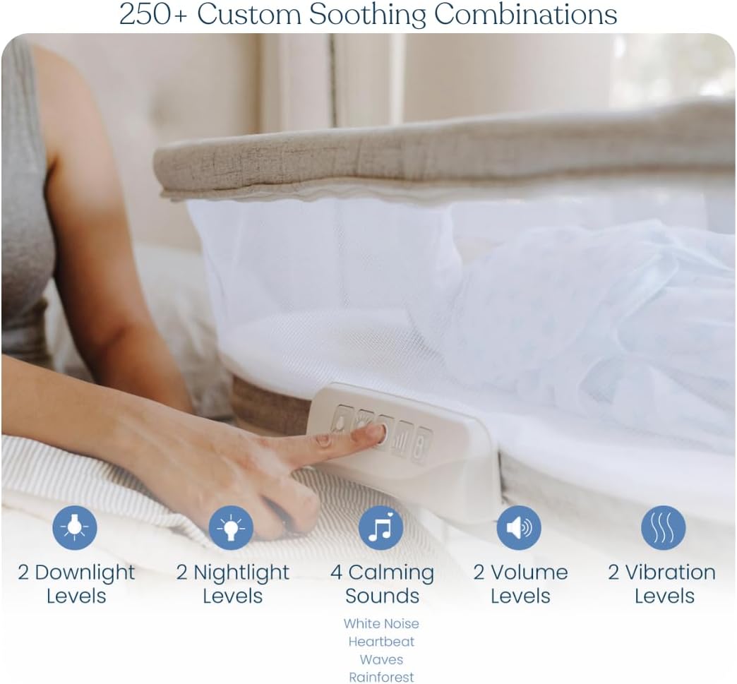 • SOOTHING FUNCTIONS: Multiple Levels of built-in vibrations and soothing calm sounds, and a nightlight with an auto shut-off feature to help your baby fall asleep (and stay asleep).