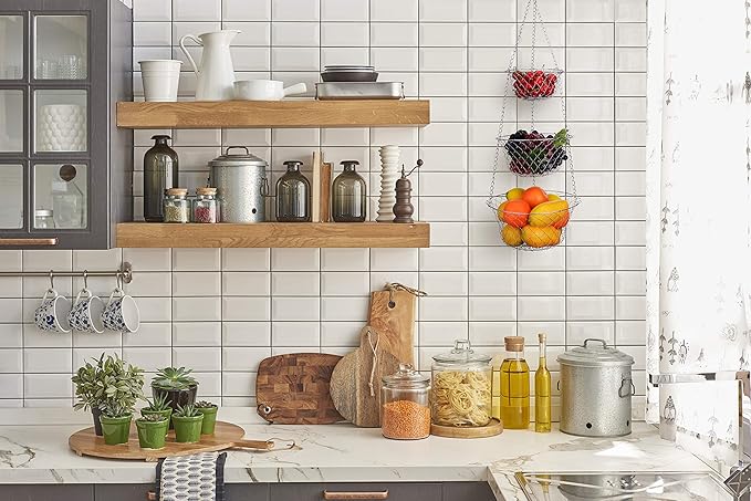 • Easy to hang & Durable construction: The foldable design makes it easy to assemble and hang, requiring minimal effort and no tools. the sturdy construction of the hanging kitchen baskets, ensuring it can hold a significant amount of weight without sagging or buckling.