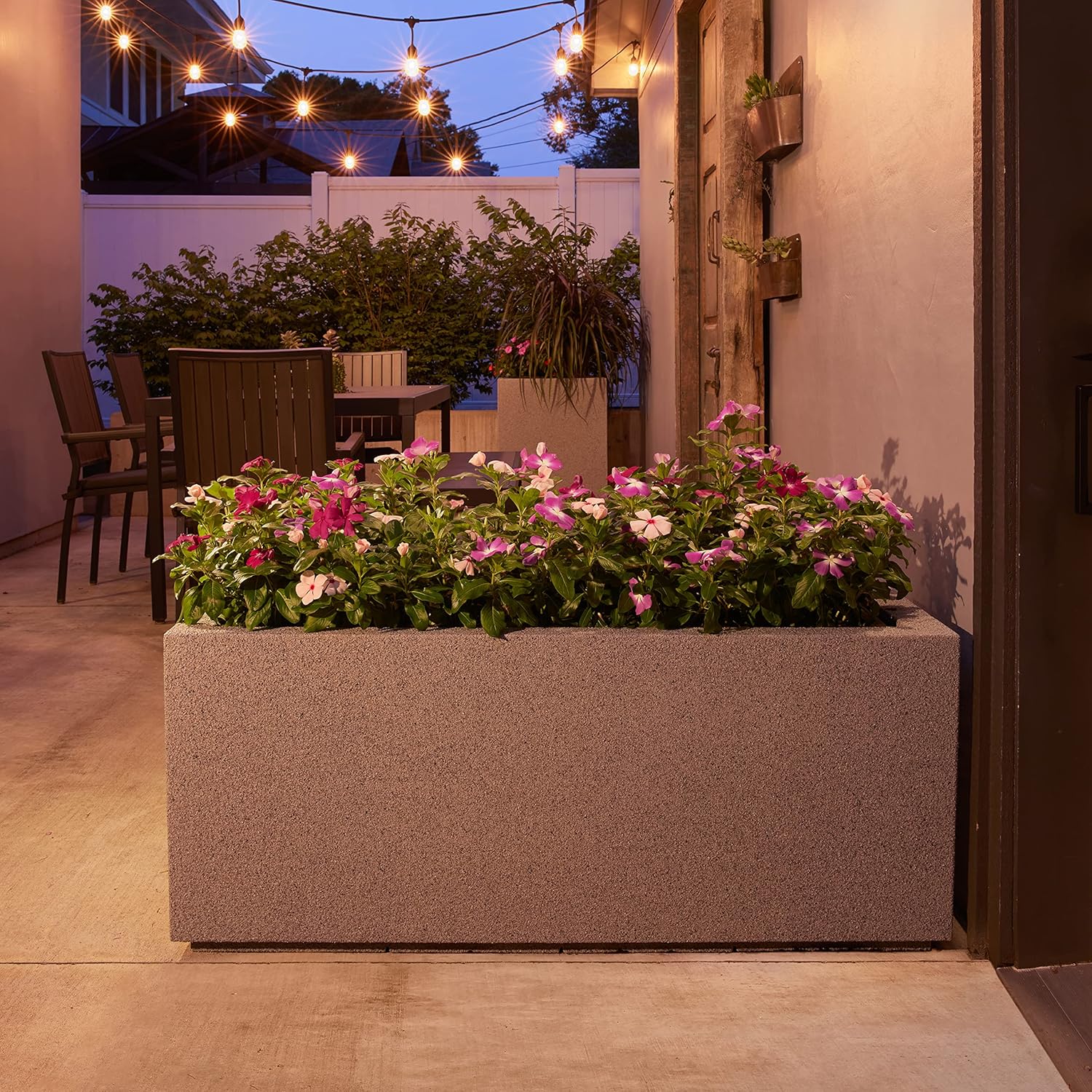 • LIGHTWEIGHT AND DURABLE: PolyStone Planters are made like no other on the market today! Our innovative long garden containers are handcrafted of three distinct eco-friendly layers which provide extreme durability. With the substantial appearance of cast-stone or concrete, even the largest sizes of our planters are surprisingly lightweight and easy to handle.