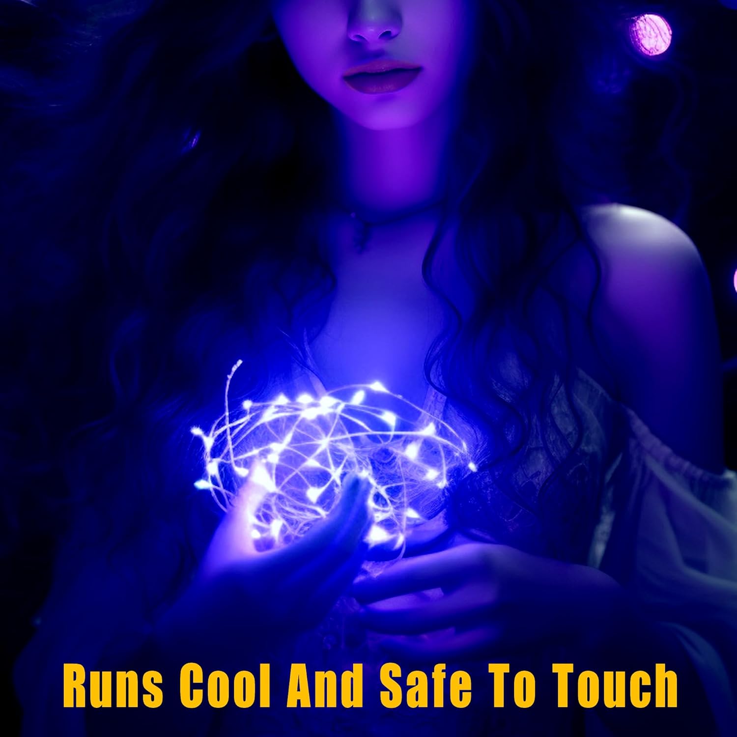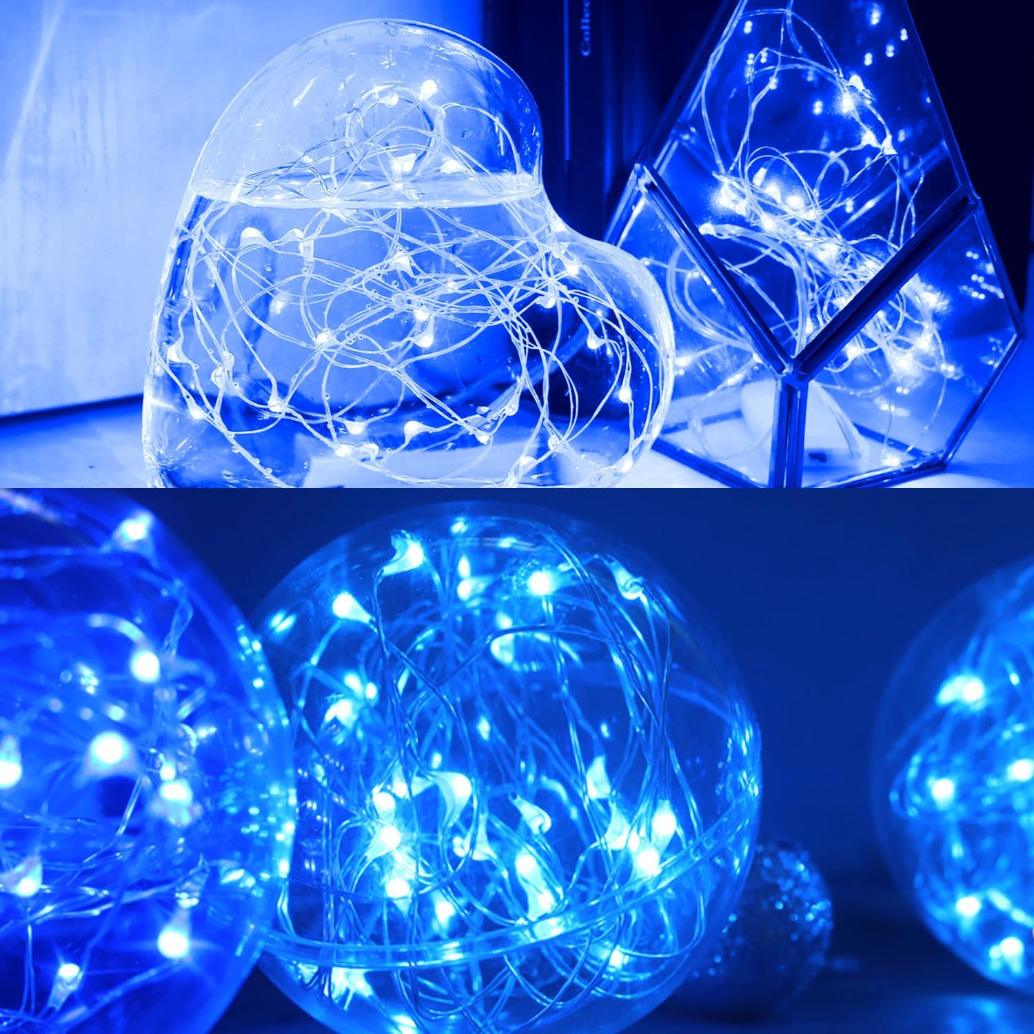 • Battery Operated Fairy Lights:6pcs lights per packing,battery compartment extension cord is 0.6ft,each light is with 6.25 feet flexible thin silver copper wire with 20pcs bright micro leds,Blue Lighting. They glint in the dark, decorate your patio, deck, front porch, bedroom,wedding, party, shop, restaurant ,room and Thanksgiving,Christmas Centerpiece Decor , And the copper wire disappeared into the night, Leaving only light.