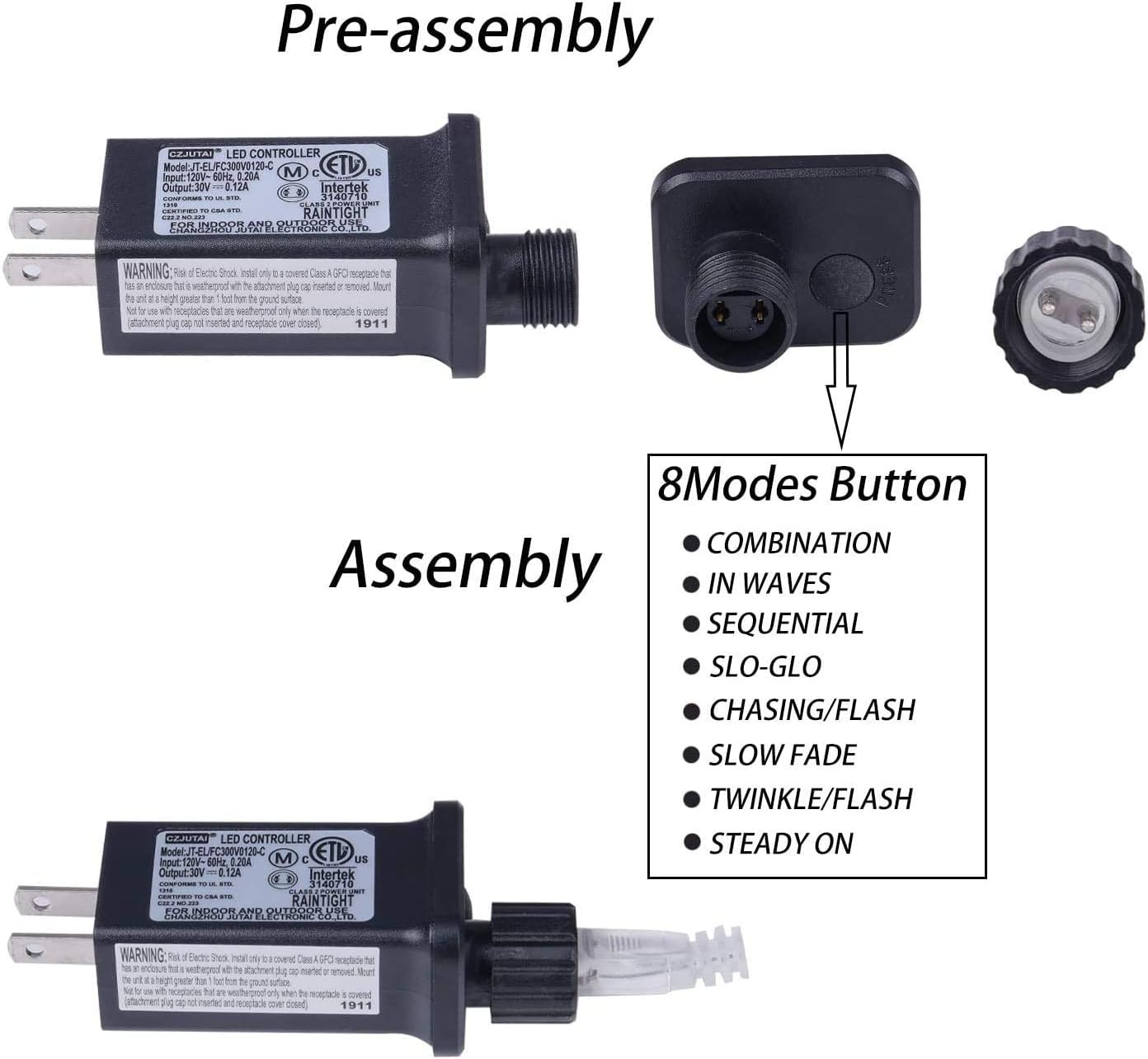 • 8 blinking modes: Combination, in waves, sequential, slogs, chasing/flash, slow fade, twinkle/flash, and steady on