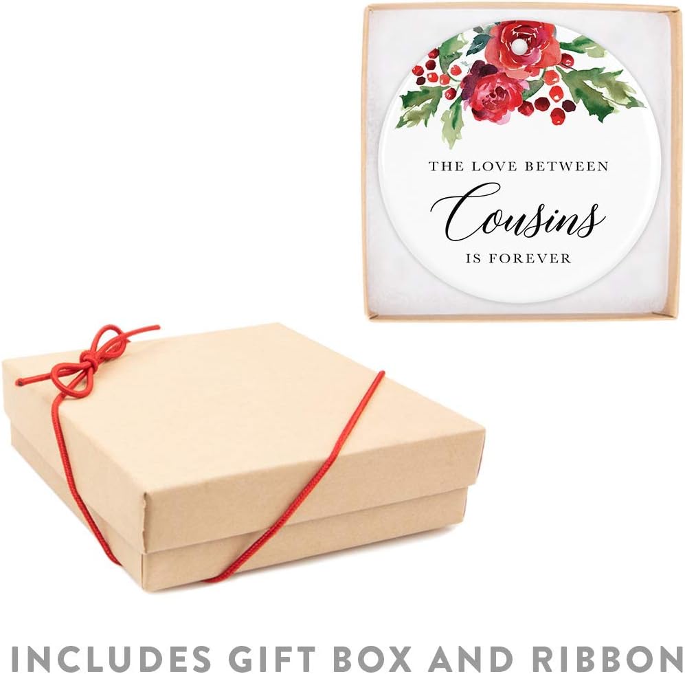 • INCLUDES: 1 round ceramic porcelain ornament designed by Andaz Press, 1 gold cord ribbon, 1 gift box. Celebrate Cousin Love: This cousin ornament 2024 symbolizes the special bond between cousins; a heartfelt christmas ornament cousin that makes a meaningful addition to holiday décor and a keepsake for loved ones