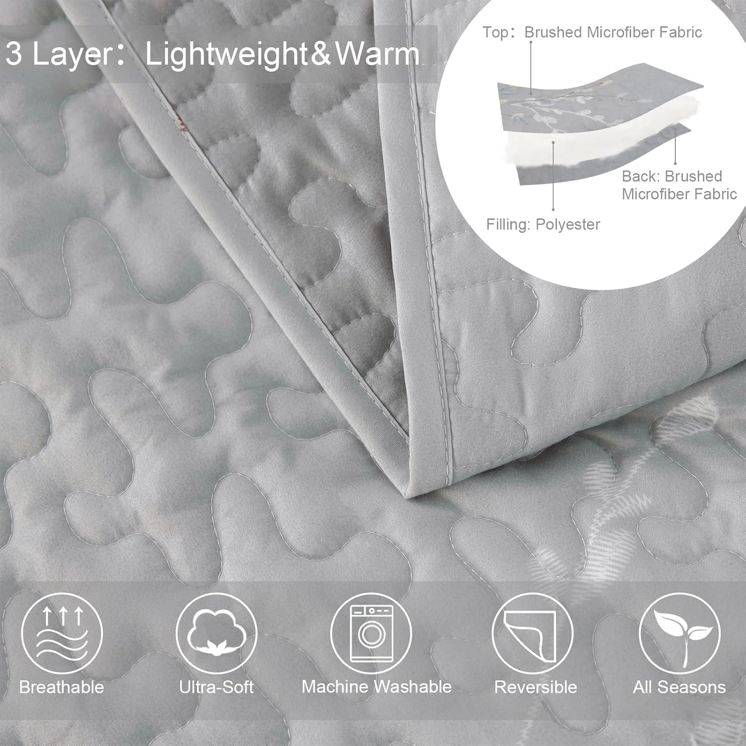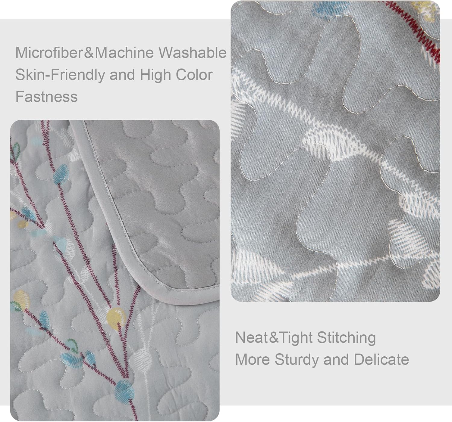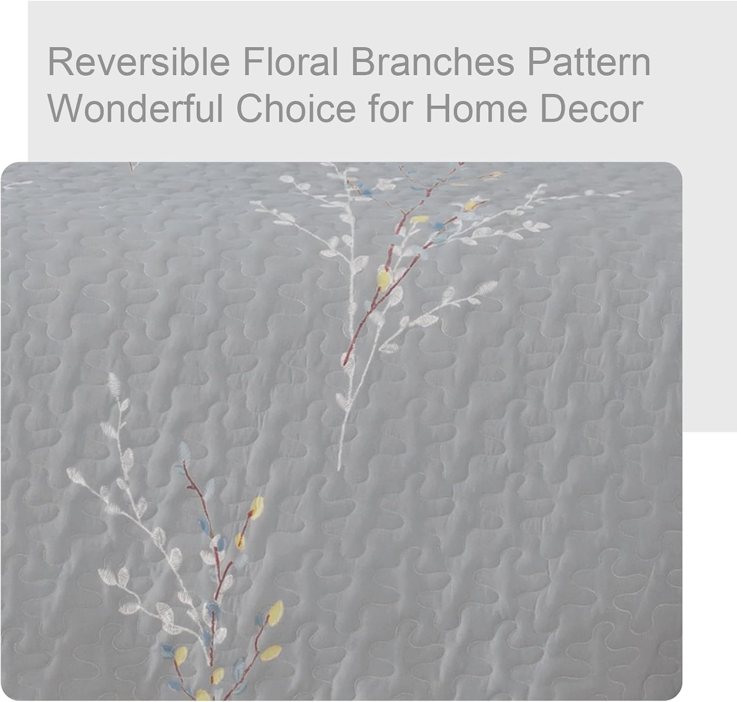 • Design: Floral branches patterns are printed with special printing and dyeing crafts which make color more vibrant and ensure a better color fastness. Sewed with exquisite neat stitching, the grey flowers bedspreads bring a stylish and elegant decoration to your bedroom