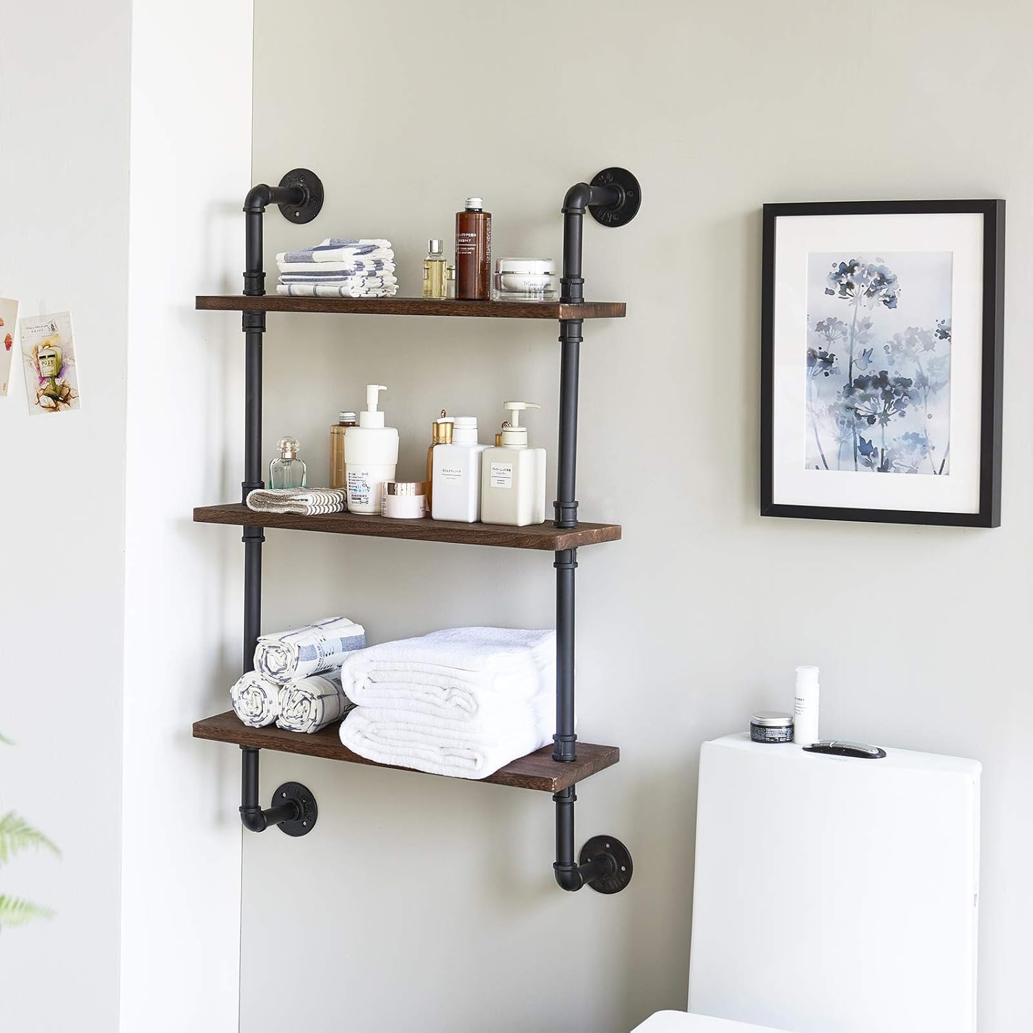 IBUYKE Industrial Pipe Shelves, Pipe Floating Shelves, Rustic Wall Mount Bookcase, 3-Tiers, 23.6" Metal Bracket Storage Wall Shelf for Bedroom, Kitchen, Living Room, Bathroom RF-TM003