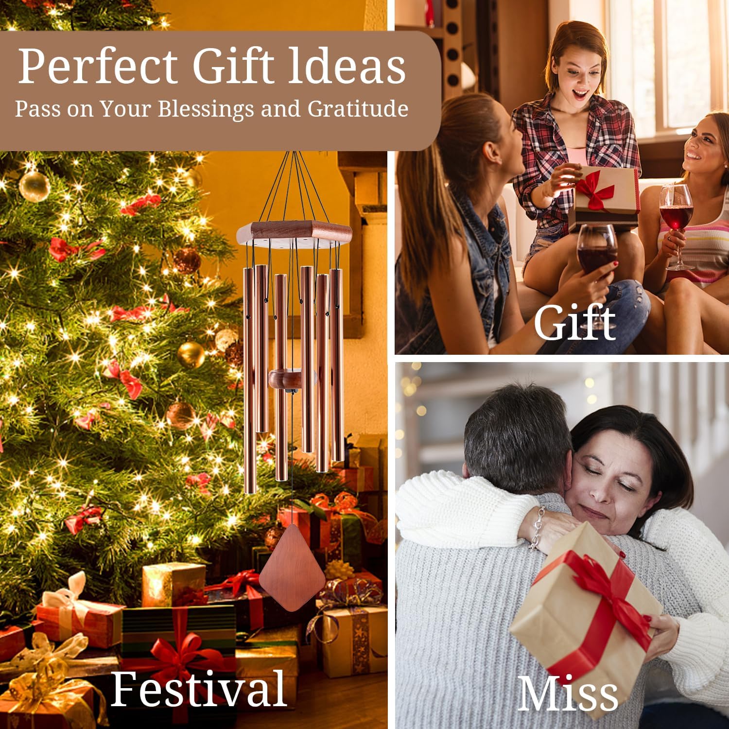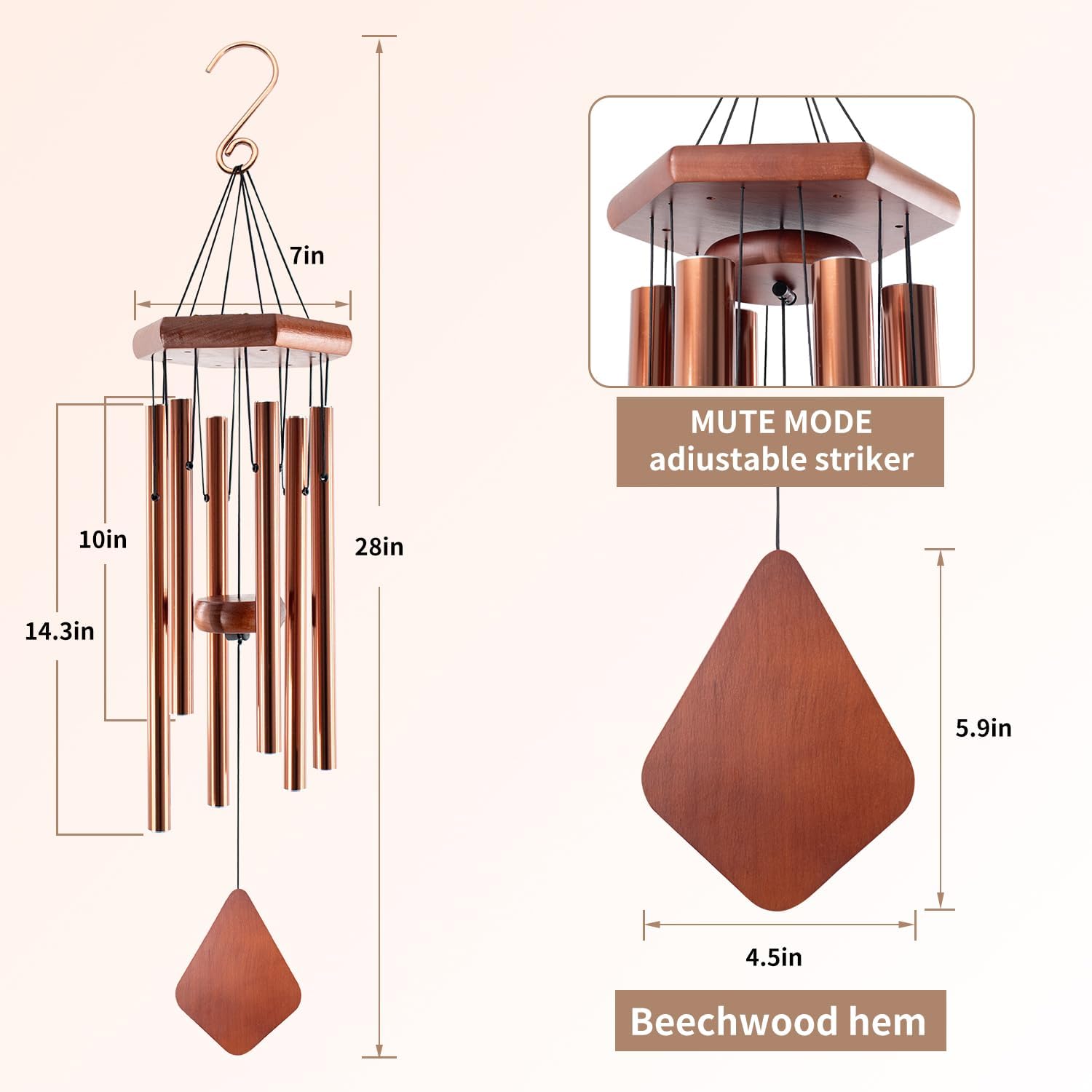Small Wind Chimes for Outside, 28 Inches Wind Chimes Outdoor Tuned Soothing Melody, Sympathy Wind Chimes for Mom/Housewarming, Bronze Wind Chimes Outside Decoration.