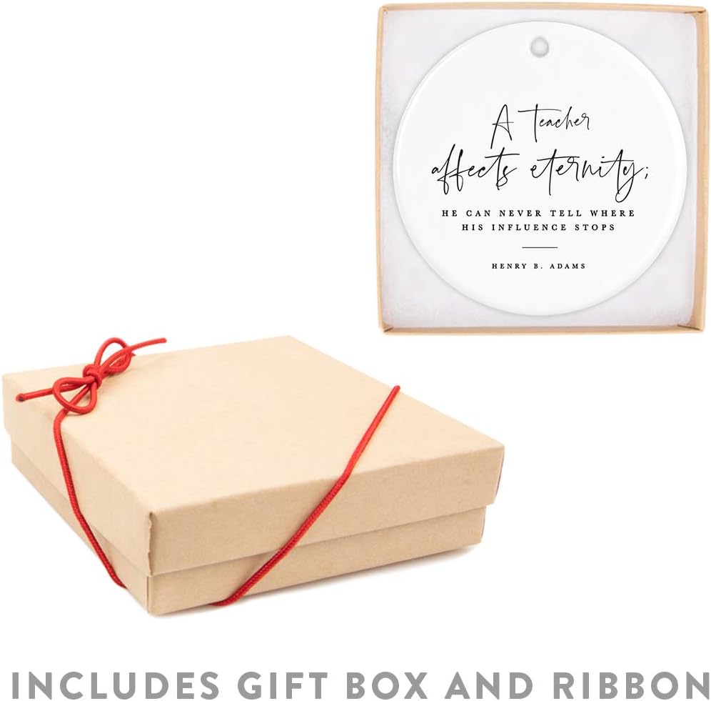 Andaz Press Round Ceramic Porcelain Christmas Tree Ornament for Teacher Thank You Appreciation Gift, A Teacher Affects Eternity; He Can Never Tell Where His Influence Stops, Henry B. Adams, 1-Pack