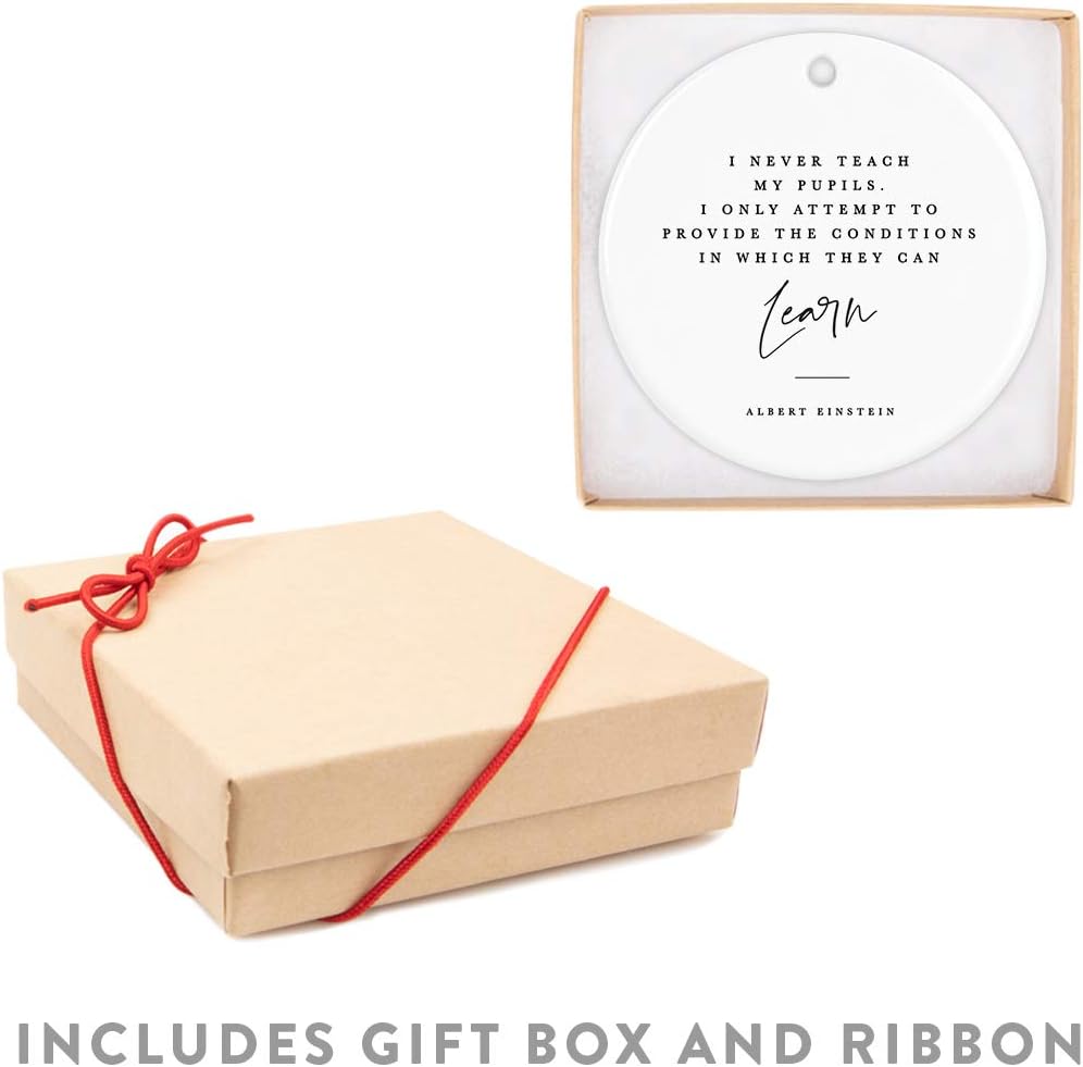 Andaz Press Round Ceramic Porcelain Christmas Tree Ornament for Teacher Thank You Gift, I Never My Pupils, I Only Attempt to Provide The Conditions in Which They can Learn, Albert Einstein, 1-Pack