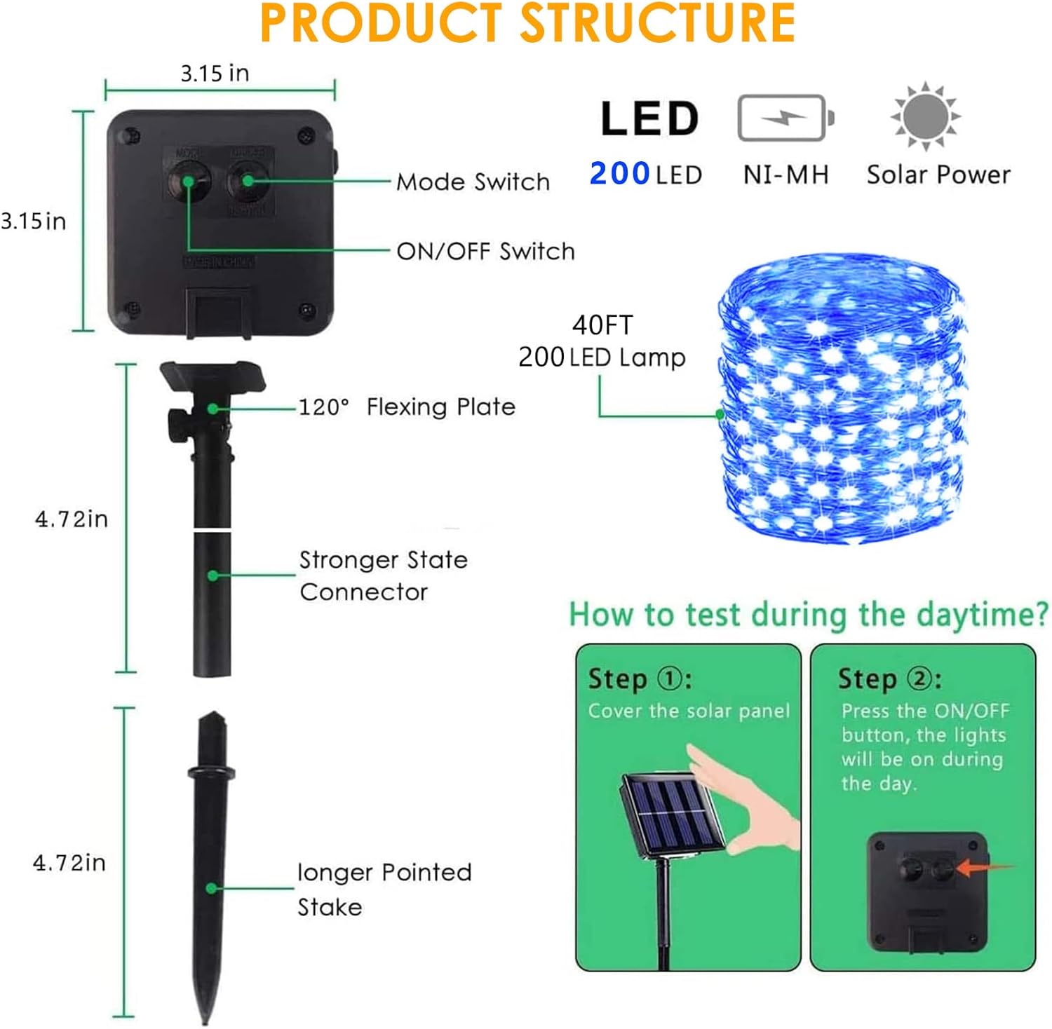 • [Widely Used Solar Fairy Lights Outdoor]: Perfect for Christmas decor, garden lighting, party decorations, wedding lights, patio, backyard, fence, porch, tree, roof, and more. These blue solar fairy lights bring a vibrant glow to both indoor and outdoor spaces, ideal for any occasion.