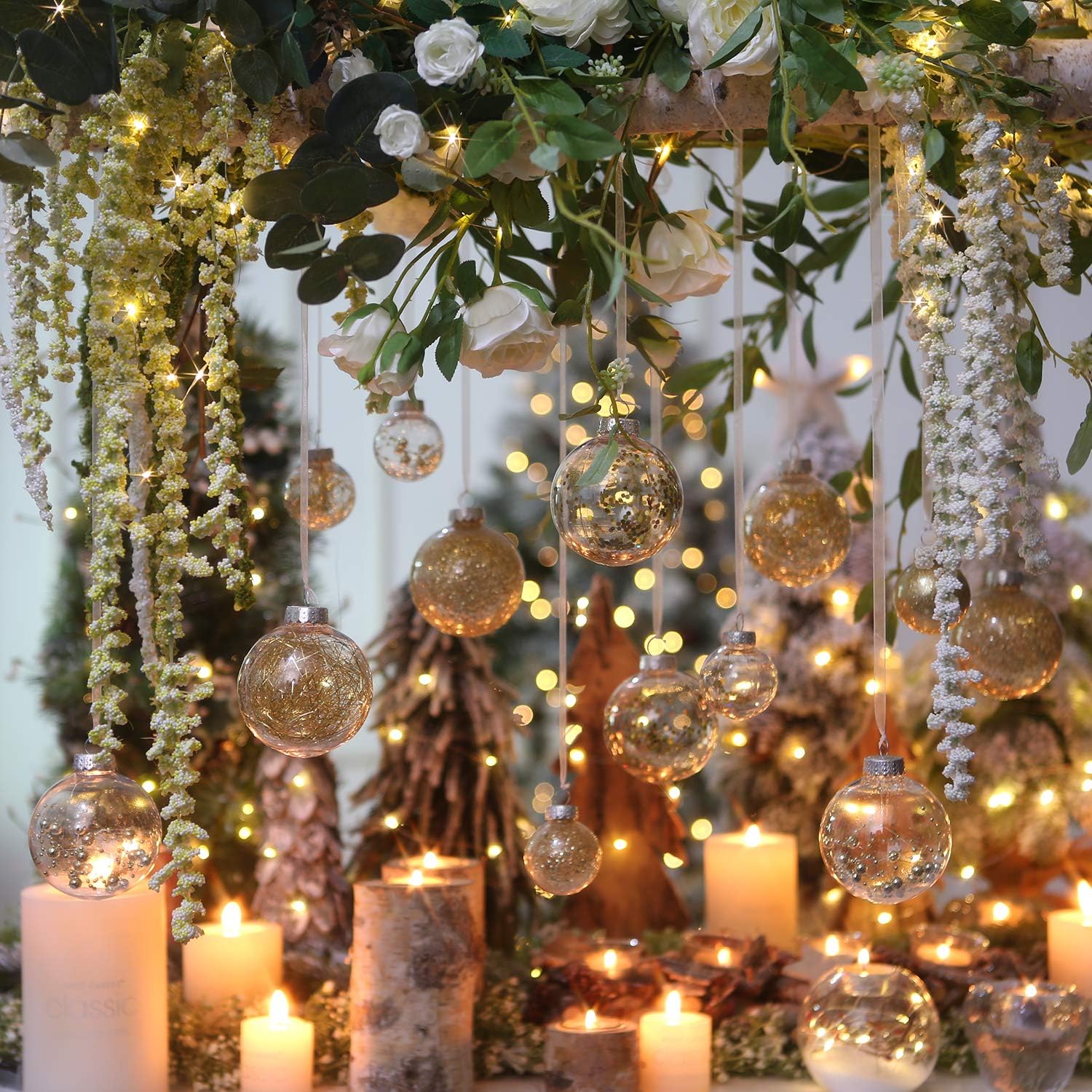 • DISMOUNTABLE TOP WITH RIBBON - Each ball ornament equips a dismountable metal top and comes a string that’s already hook to the bulb for easy hanging. With the dismountable top, you can also stuff the clear ball with your favorite decorations