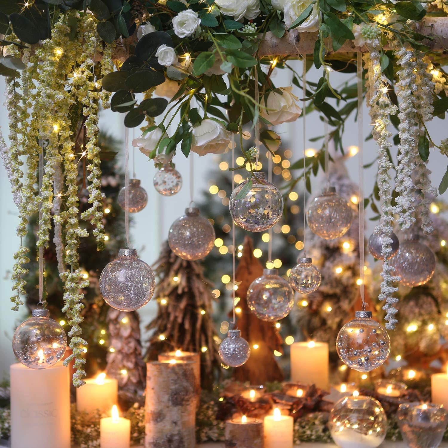 • DISMOUNTABLE TOP WITH RIBBON - Each ball ornament equips a dismountable metal top and comes a string that’s already hook to the bulb for easy hanging. With the dismountable top, you can also stuff the clear ball with your favorite decorations