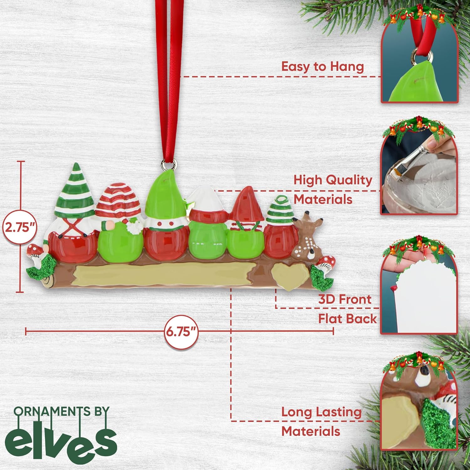 3D Gnome Family of 6 Ornament 2025 Personalized Family Christmas Ornaments 2025 | Woodland Deer Mushrooms Personalized Tree Ornaments for Grandchildren, Siblings & Grandkids of Six Ornament Gnomes