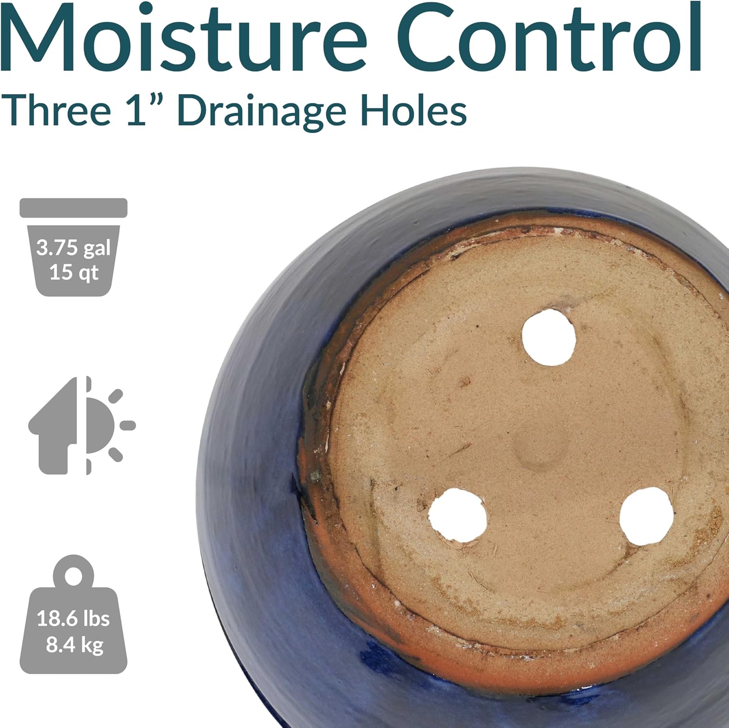 Sunnydaze Chalet Large Ceramic Plant Pot - Round Outdoor Glazed Ceramic Planter Pot with Drainage - Imperial Blue - 14.5"