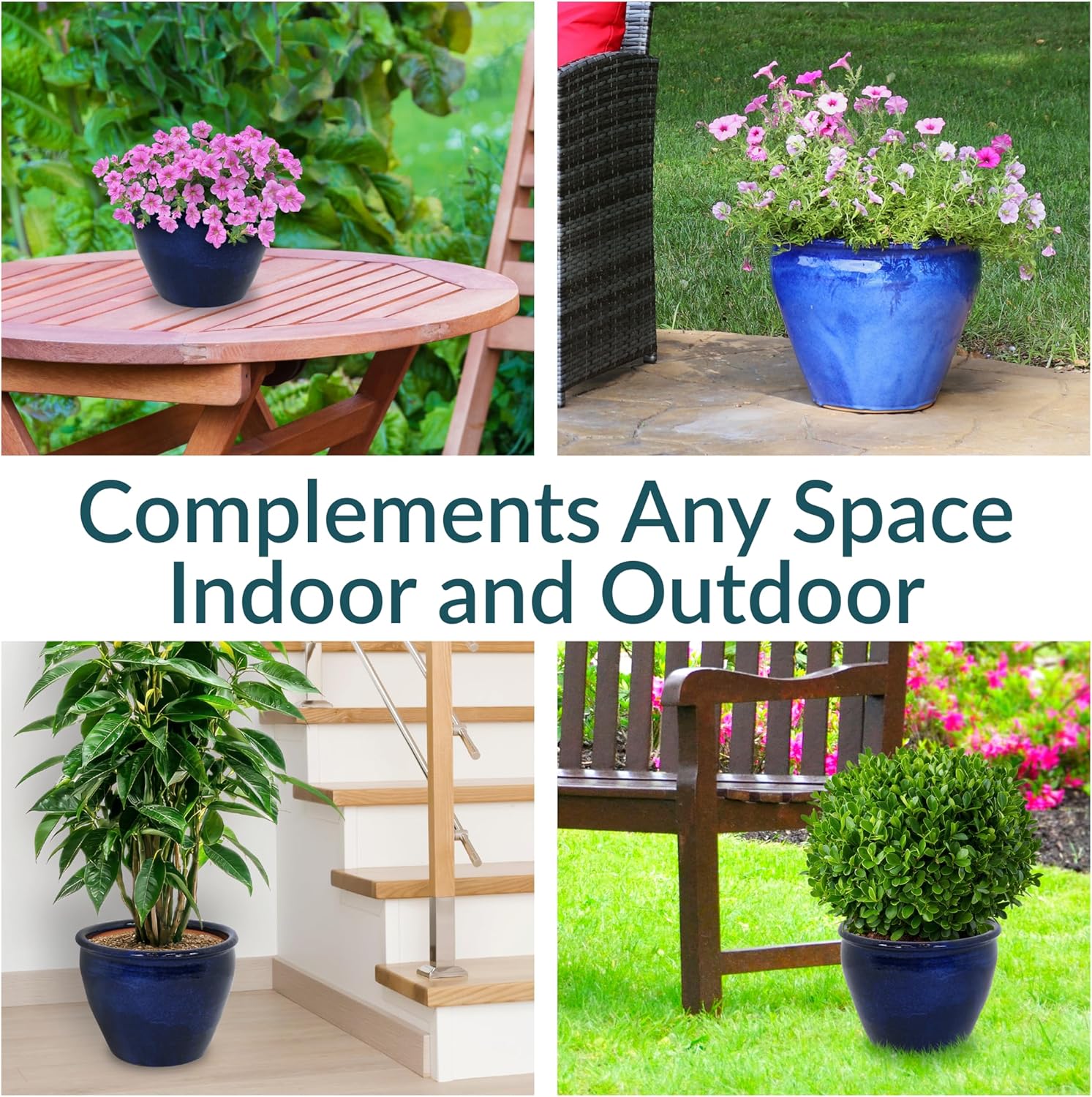 • DESIGNED FOR BEAUTY AND DURABILITY: This outdoor plant pot is crafted with a rich, hand-painted glazed finish that is kiln-fired for a classic, shining appearance. Subtle variations in color highlight the artisanal glazing process, making each piece truly unique. The durable ceramic construction offers natural UV and frost resistance, while its heavy weight adds stability to outdoor arrangements, keeping the planter upright in windy conditions.