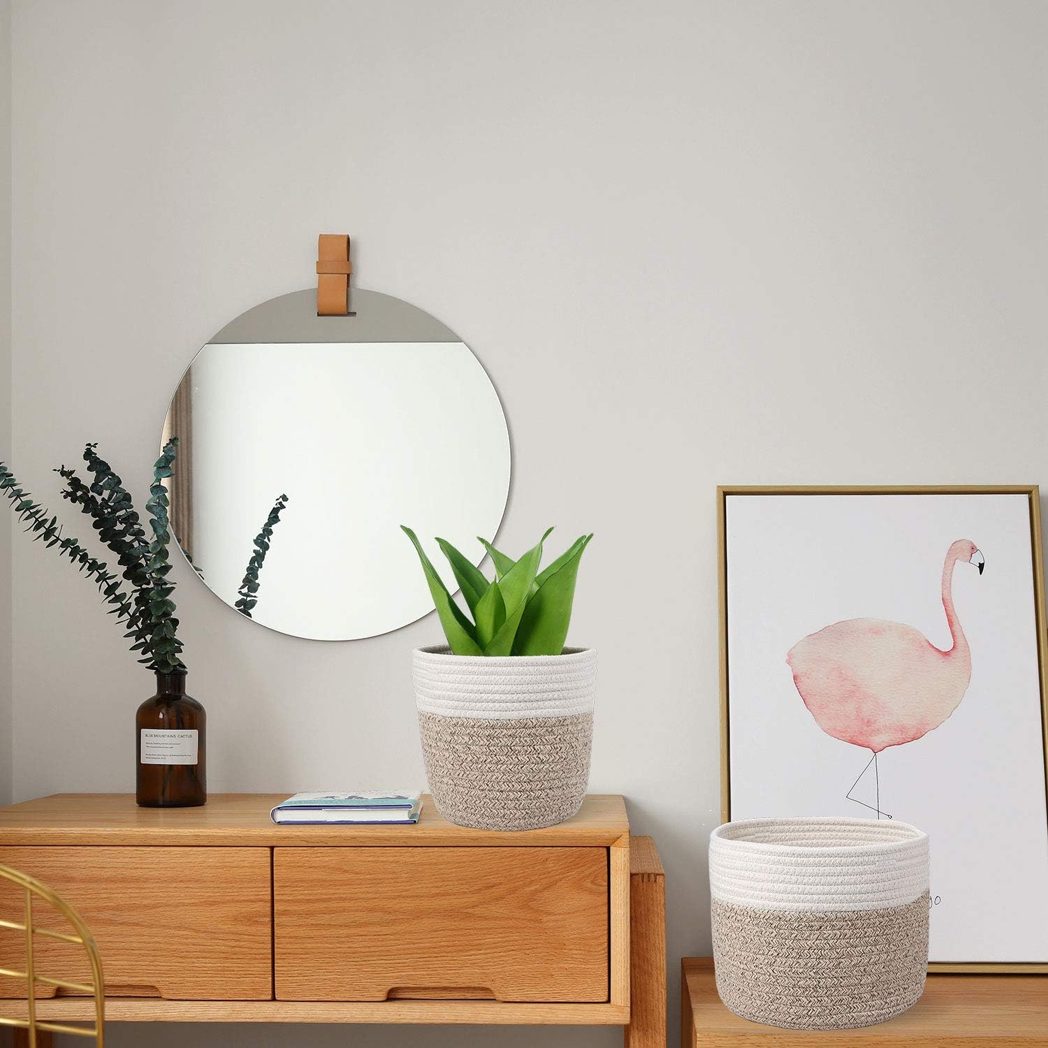 Woven Cotton Rope Plant Basket for 8" Flower Pot Small Basket for Plants Storage Organizer H7.5 x W8.5