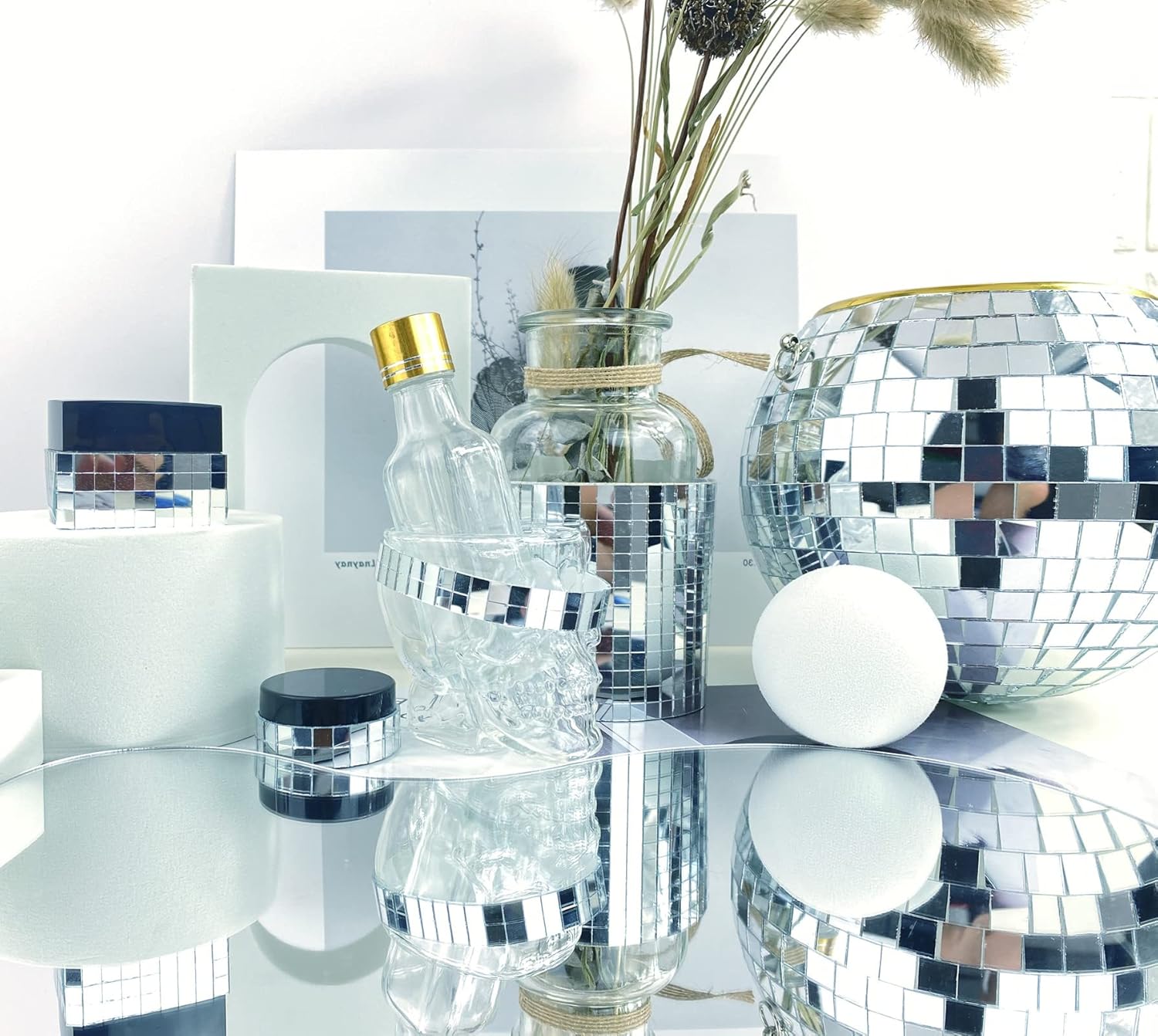 • 【PACKAGE INCLUDED】 Each package has 3600 pieces of square mirror mosaic tiles with self-adhesive backing. Each small mosaic tile can be split independently to decorate other items according to your own ideas.