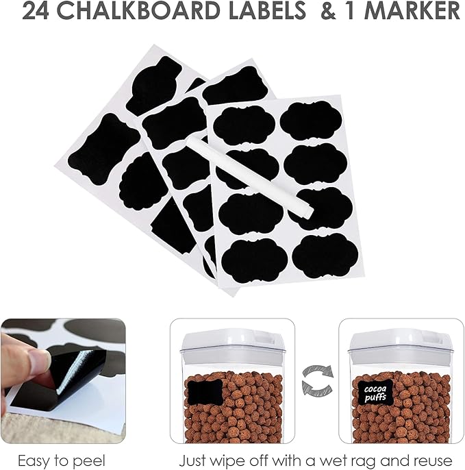 • 24 Reusable Labels----These labels will help you never confuse flour with powdered sugar or baking powder with baking soda. They are reusable, you can switch contents whenever you need.