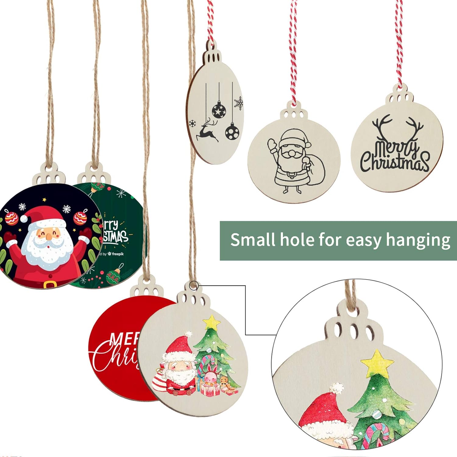 • Easy to Use: Both sides are sanded to a smooth surface ready to paint, stain, write, and color. Every wooden slice with a pre-drilled small hole and comes with twine is easy to hang and decorate your Christmas tree
