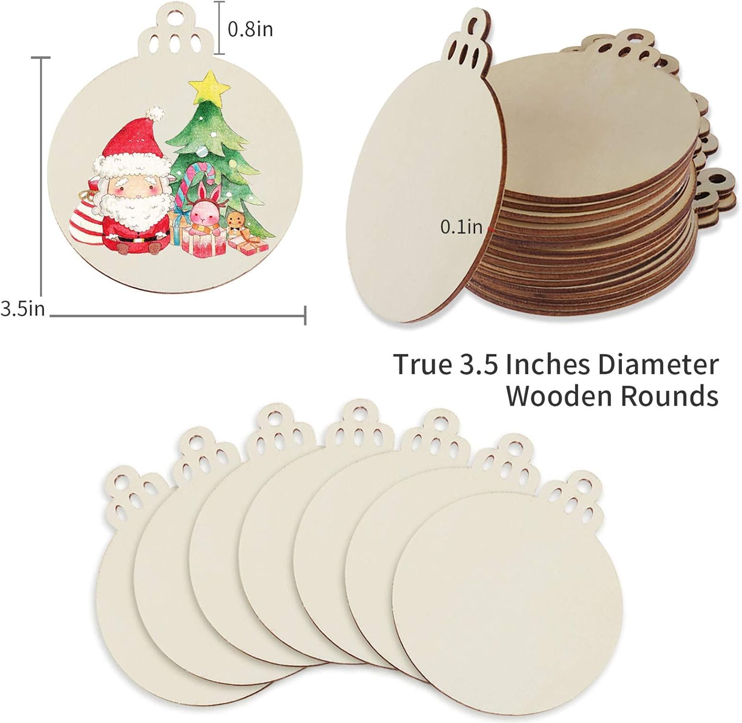 Fuyit 100Pcs 3.5 Inch Wooden Christmas Ornaments Unfinished Wood Slices with Holes, Predrilled Wood Round Circles Blank Discs for DIY Crafts Party Decorations