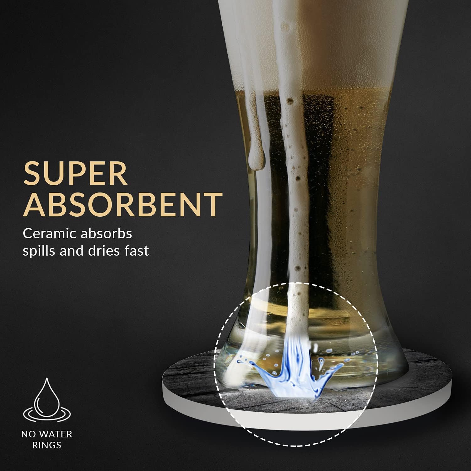 Emerson Coasters for Drinks Absorbent – Natural Stone Drink Coasters Set with Holder, Coasters for Coffee Table, Wooden Tabletop Protection Marble Style – 100% Heavy Duty Set of 6 (Obsidian)