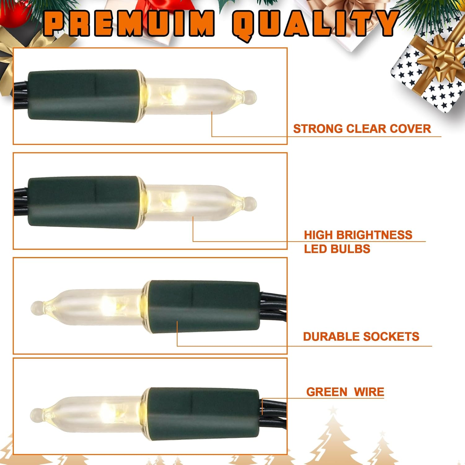 • 50 LED WARM WHITE LIGHTS: To keep it from falling and for lasting use, Joliyoou mini string lights make strong bulbs molded into sockets for a secure fit. With 50 LED bulbs in total, the string lights glow out great charming warm white lighting effect, surely adding great romantic touch to your holiday night
