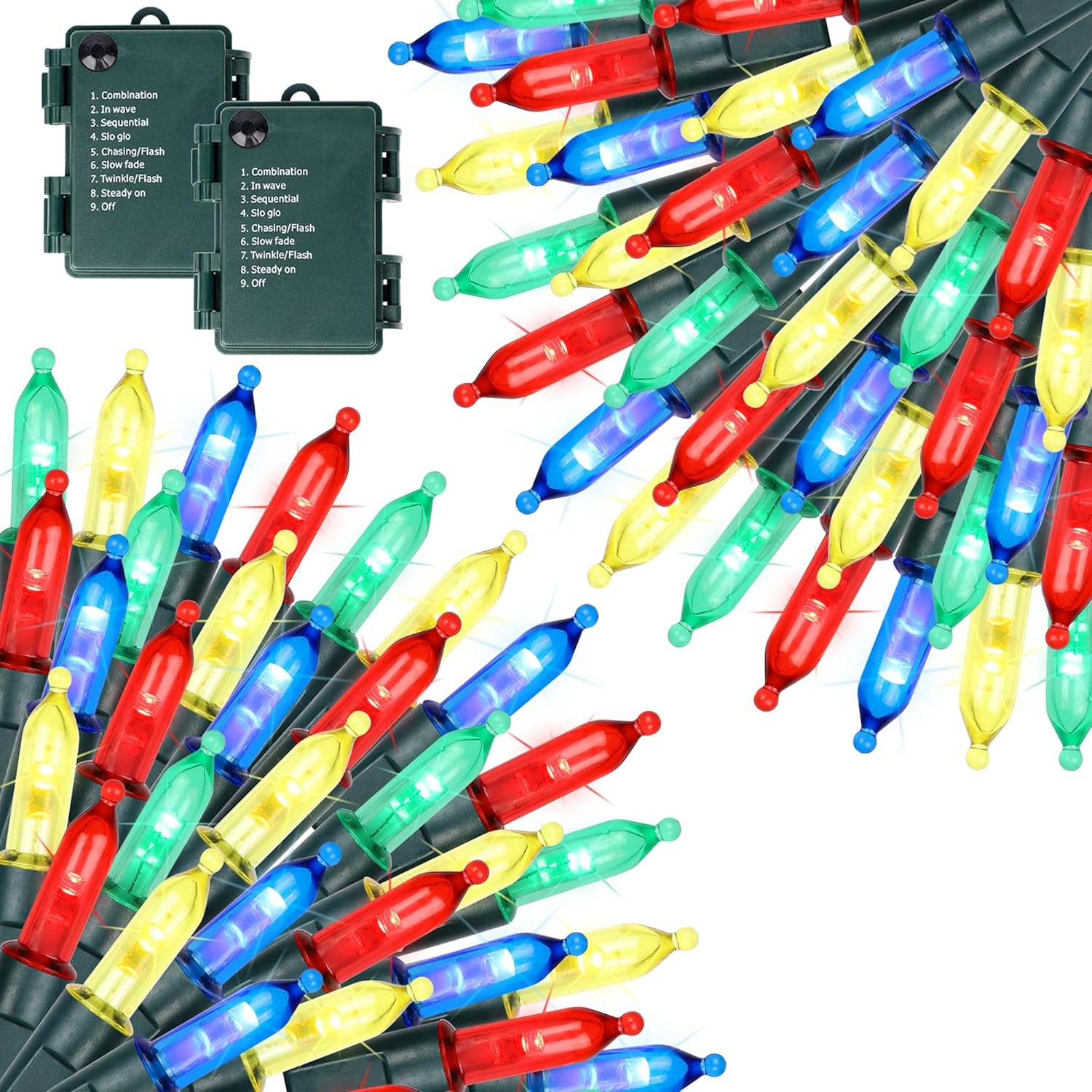Joliyoou 2 Packs Total 100 LEDs 32ft Multicolored Christmas String Lights, Battery Operated Christmas Mini String Lights with 8 Lighting Modes, Indoor Outdoor LED Xmas Fairy String Lights with Timer