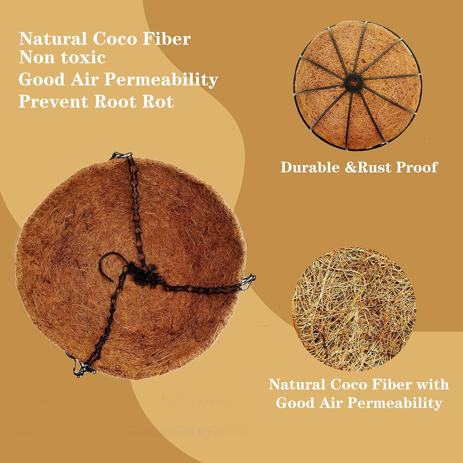 • 🍀 NATURAL MATERIAL AND GOOD CARING:with the material of natural coconut fiber,hanging pots liners feature a good air and water permeability so they can provide good care for your plants. and they are environment- fiendly with the features of non-toxic and tasteless ,so you don't need to worry that they will harm your health and your plants.