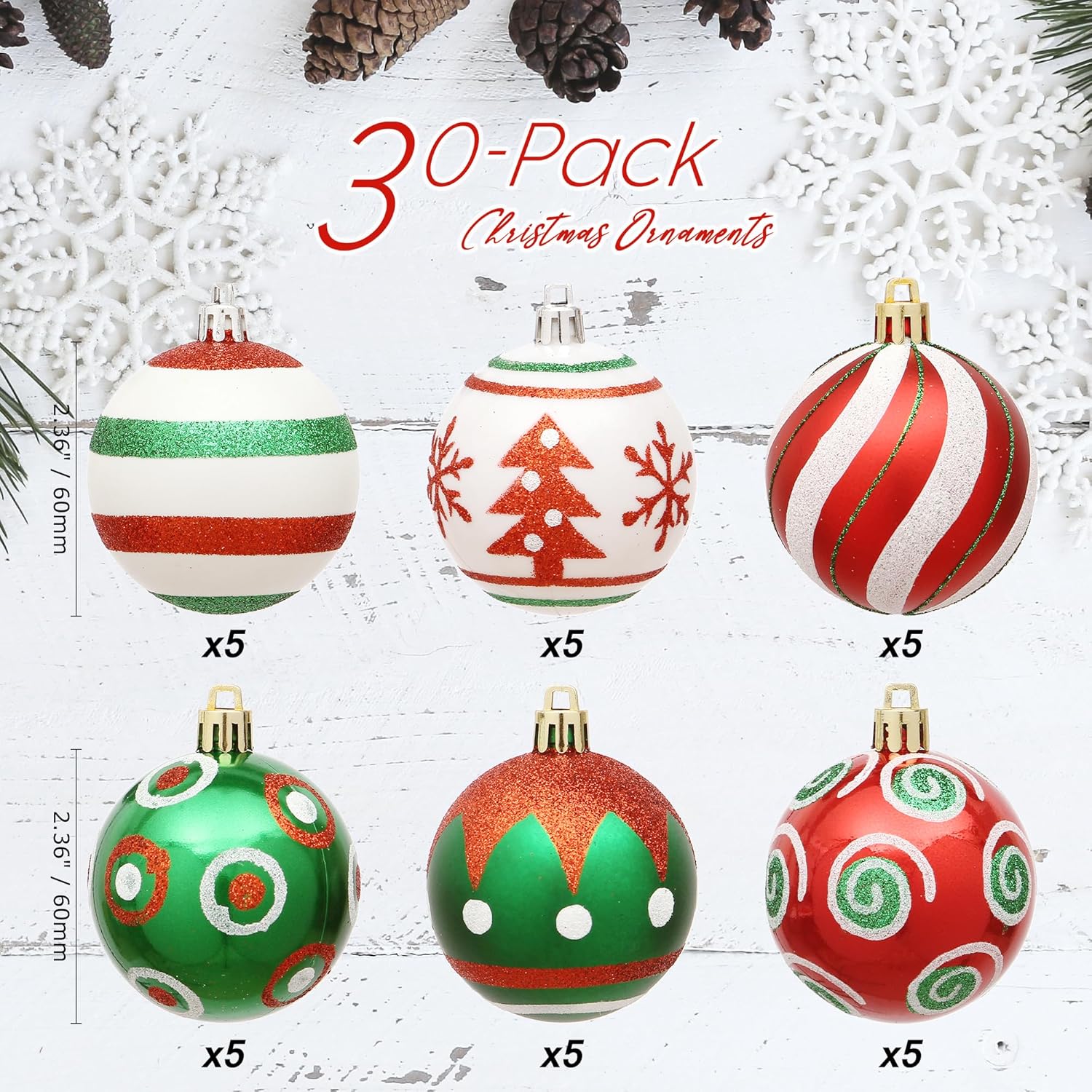 • 30 Christmas ornaments - one pack contains 30 Christmas ornaments that are enough to decorate a whole tree(tree height should be 3-6 feet)