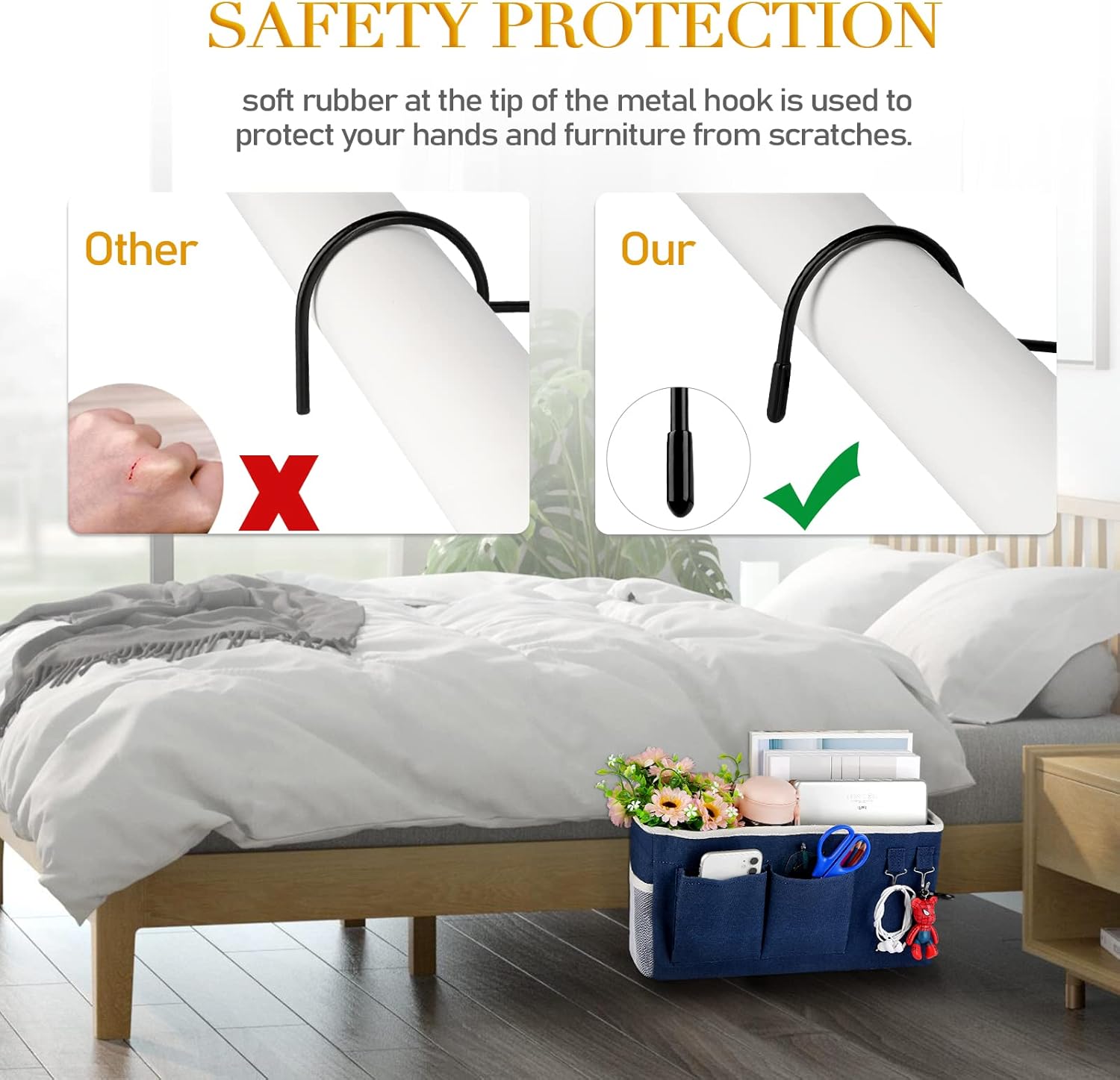 • 【Full-scale Encirclement】Unlike other similar bedside storage bag where only part of the iron frame is covered, the metal frame on the top and inside of our bedside pocket caddy is completely covered. The whole bag is fixed to prevent tilting and is more stable and enduring.