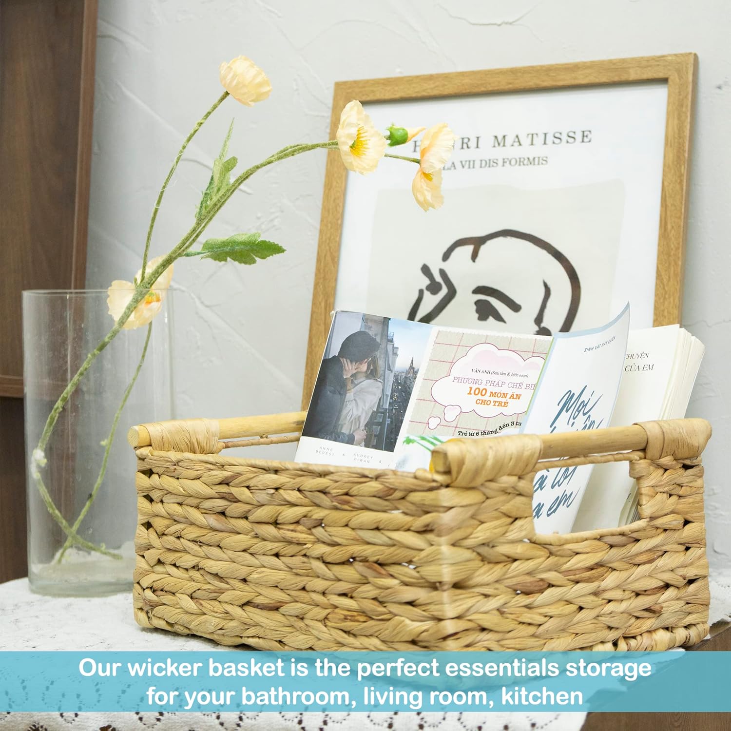 VATIMA Hyacinth Medium Wicker Basket 13.6x9.5x5.6" - With Handle, Living Room Decor, Rectangular Design