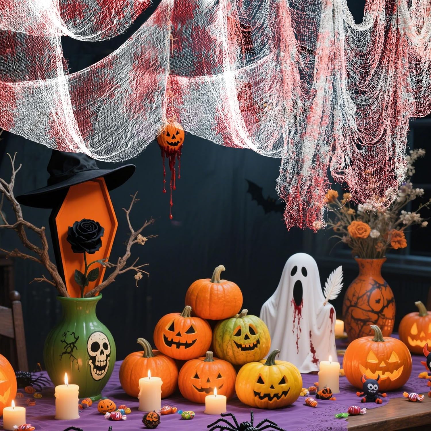 • Package Includes & Suitable Size: total 5 packs bloody spooky and scary fabric creepy gauze cloth in package, enough quantity for your Halloween haunted horror house party decoration. The length of creepy cloth is 30 inches and the width is 72 inches, the large size can be used as a decorative door curtain.