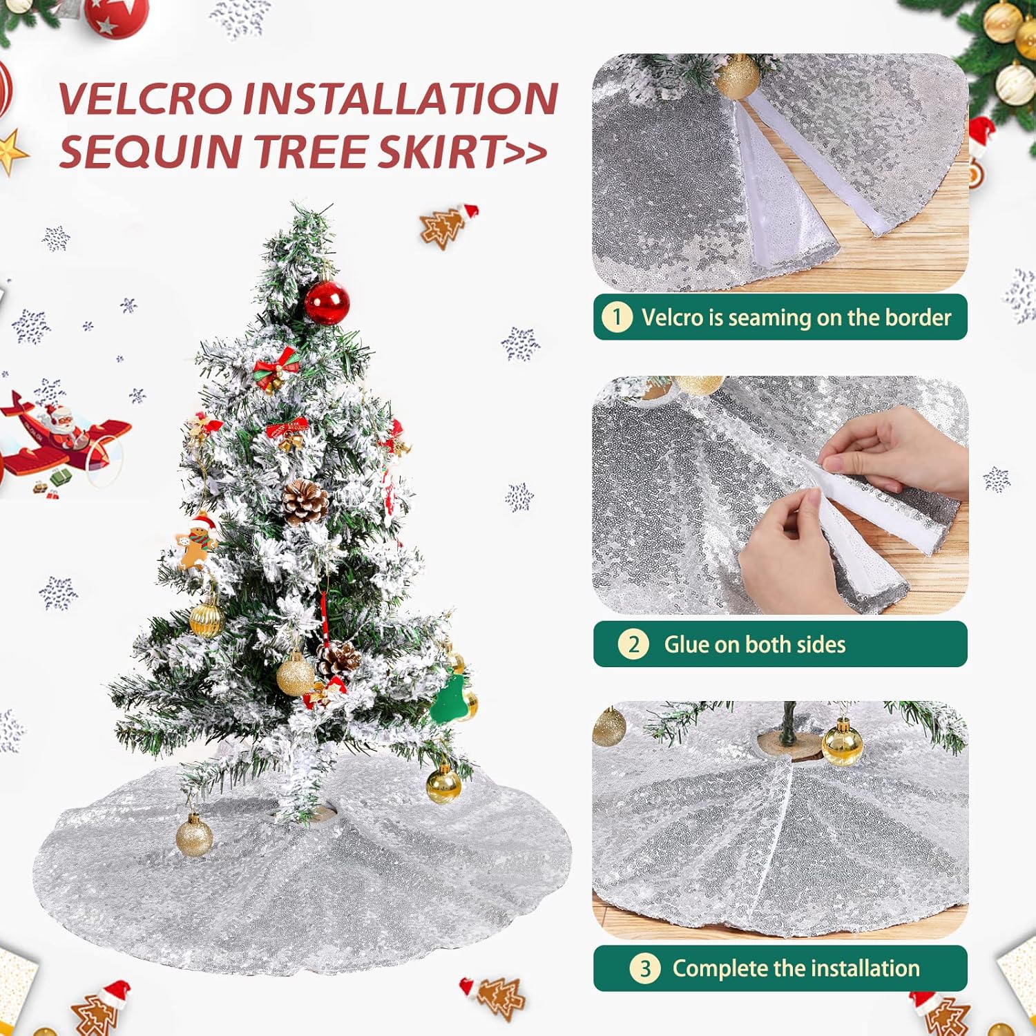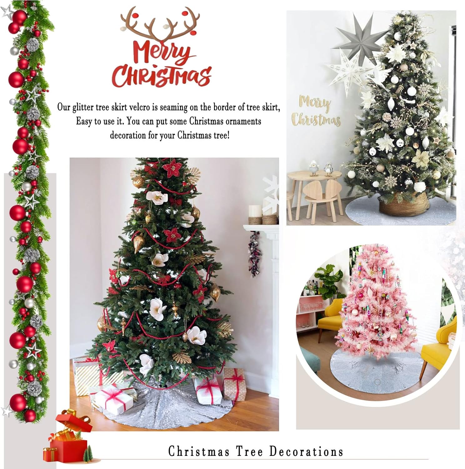 • Easy Installation: Our glitter tree skirt can be installed in seconds, and you can use them to attach a Christmas tree skirt to the base of an artificial or real Christmas tree.