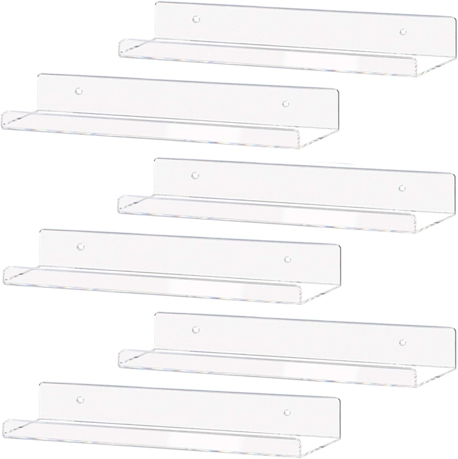 Weiai Clear Acrylic Shelf 15" Invisible Floating Wall Ledge Bookshelf, Kids Book Display Shelves Wall Mounted (15 Inch 6Pack)