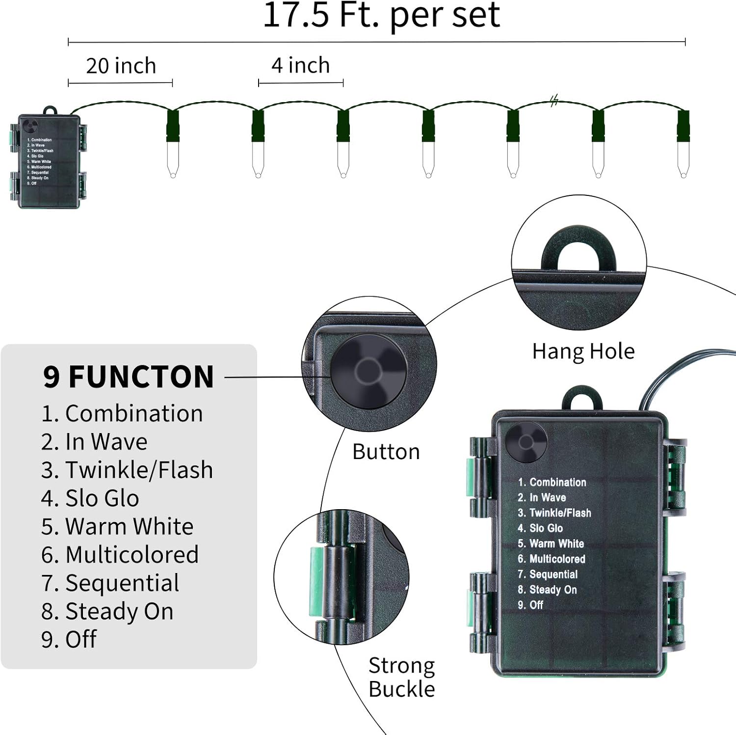 • Battery operated: 3 AA batteries (not included) operated 17.7 Feet 4 pack color changing 50 LED strands, 3.9 inches lights spacing with compact waterproof battery control box, easy positioning or hanging anywhere desired, also a wonderful gift for family, friends and relatives