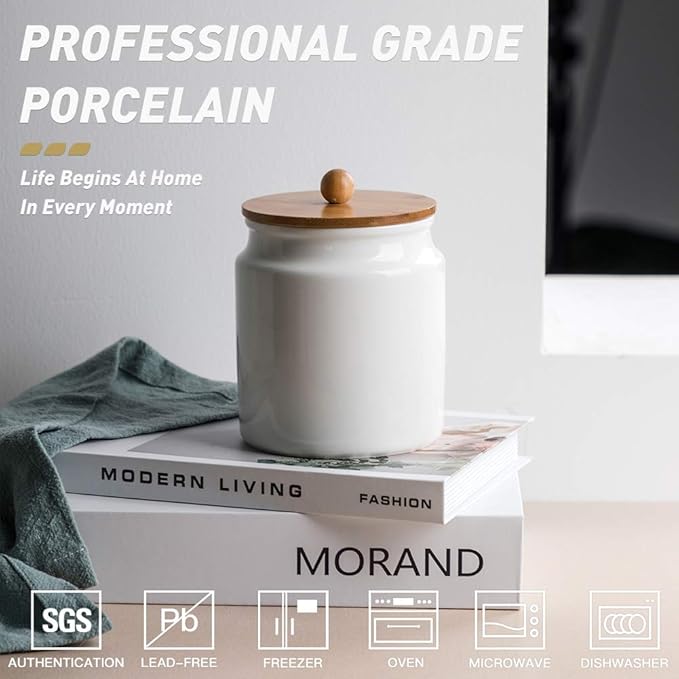 • Beautiful and Practical - You will fall in love with the unique ceramic material, the environmentally friendly and healthy wooden lid, and the rubber ring can form an airtight seal to keep the contents fresh and dry.