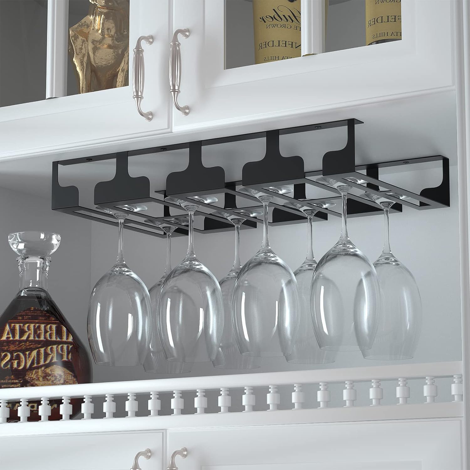 Wine Glass Rack - Under Cabinet Stemware Wine Glass Holder Glasses Storage Hanger Metal Hanging Organizer for Bar Kitchen 4 Rows Black