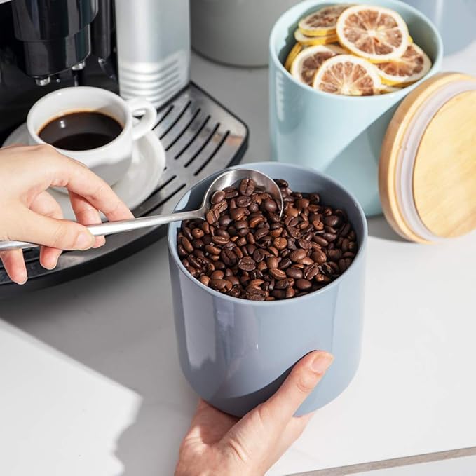 Sweejar Kitchen Canisters Ceramic Food Storage Jar, Stackable Containers with Airtight Seal Wooden Lid for Serving Coffee Bean, Flour, Tea, Cookies and More - 58 Fl Oz(Gray)