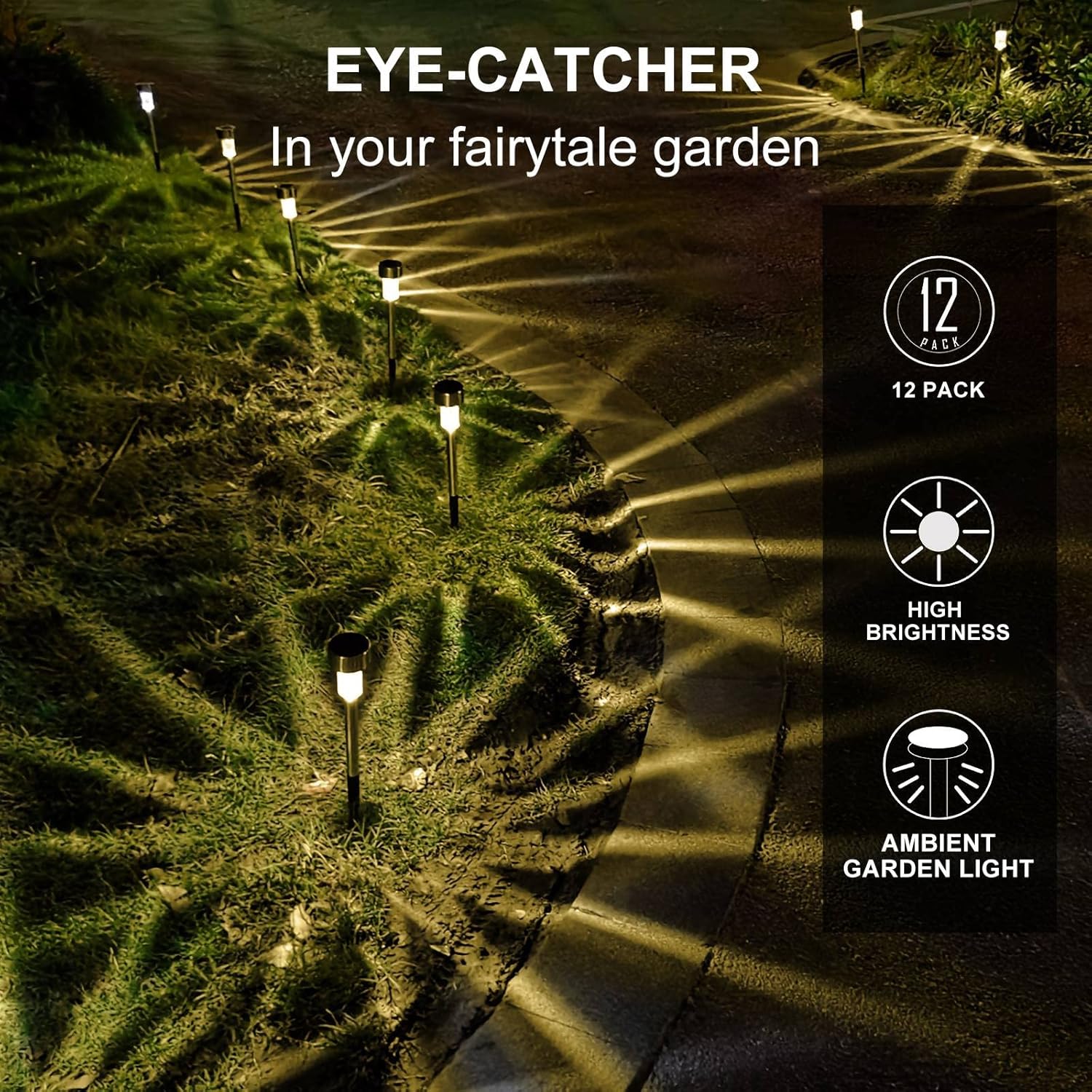 Solar Lights Outdoor Waterproof, , Solar Garden Lights Solar Powered, Stainless Steel LED Landscape Lighting Outdoor Solar Lights for Yard, Pathway, Walkway, Patio , Lawn - 12 Pack (Warm White)