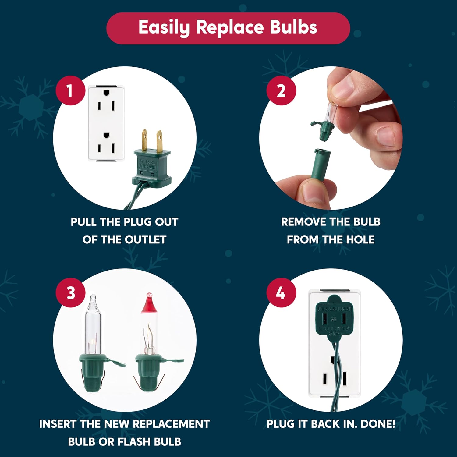 • INDEPENDENT CIRCUIT & REPLACEMENT BULBS - Enjoy a hassle-free holiday! Our lights feature an independent circuit system; if one bulb burns out, the rest stay lit. The set includes 4 spare bulbs, 2 replacement fuse, and 4 test flash bulbs., ensuring your display stays bright throughout the season without needing a full replacement.