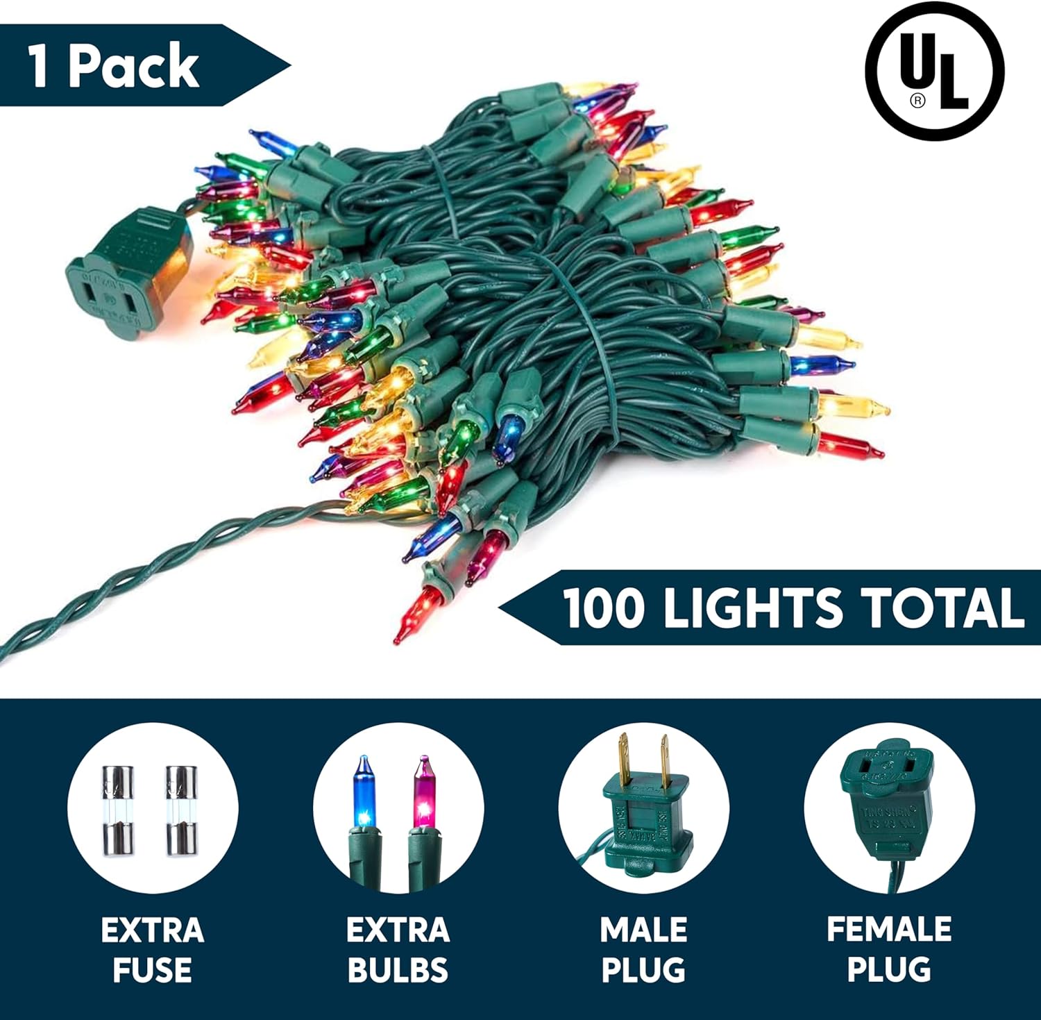 • 100 Multicolor Bulbs with Flasher Effects.Create a vibrant, traditional holiday glow with 100 warm multicolor bulbs. This set includes 2 flasher bulbs to add dynamic, eye-catching effects to your display. The classic look is ideal for Christmas tree decorations and nostalgic holiday cheer.